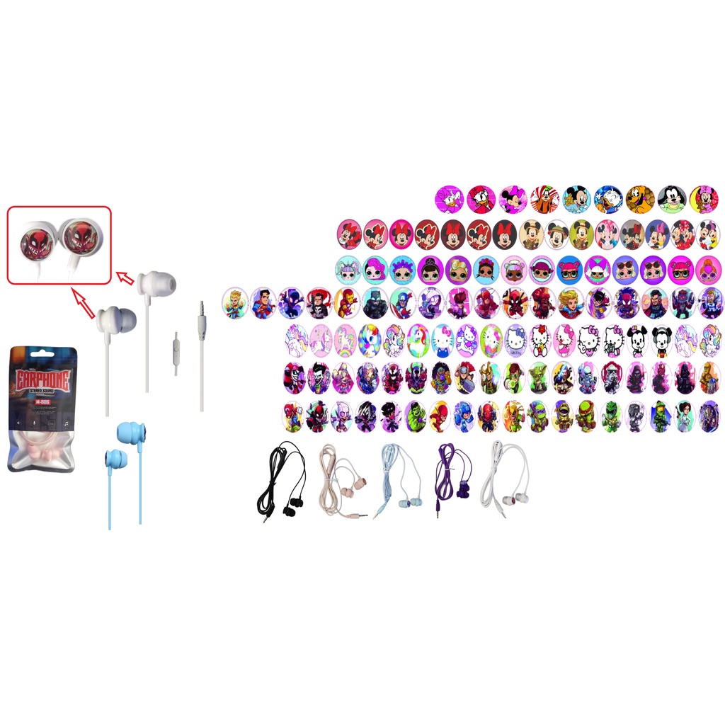 kit 3 Fone De Ouvido Premium Slim Intra Auricular com padrão anime