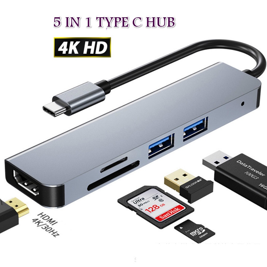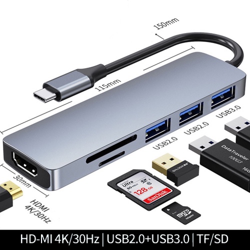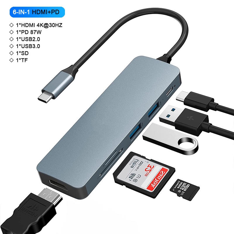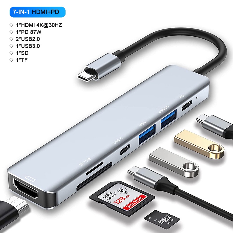 Adaptador multiporta USB C Hub compatível com MacBook Pro/Air, iPad Pro, Surface Pro e mais dispositivos tipo C (3-8in1)