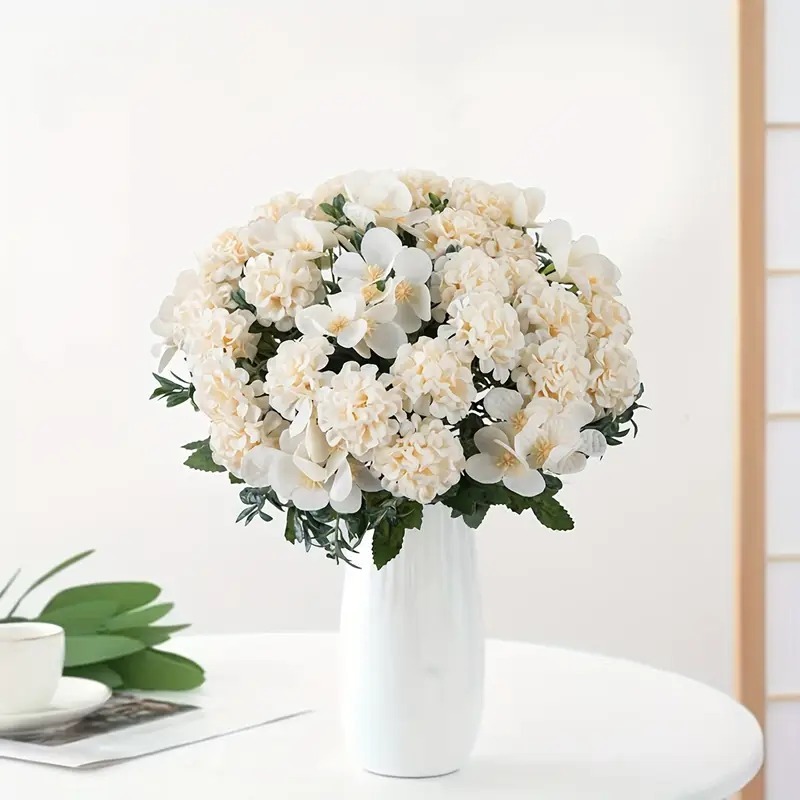 Buquê de Hortênsia Flores Artificias Ramos Cravo P/ Decoração Casamento, Arranjos, Festas e Casa - XX801836