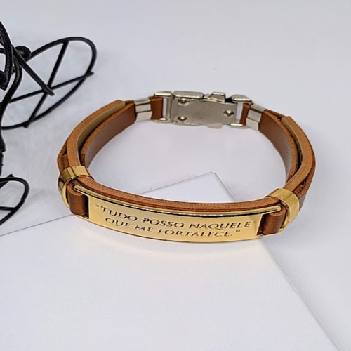 Pulseiras Bracelete Masculino Feminino Couro Sintético Aço Inox Folheado ouro 18k Tudo Posso