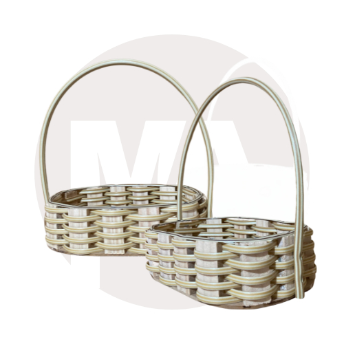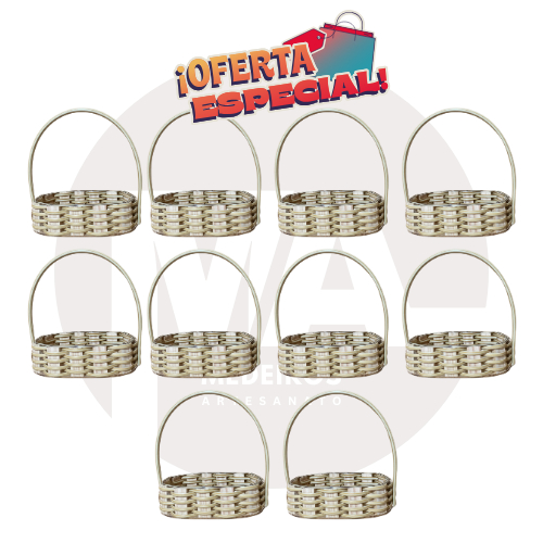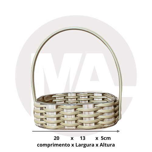 Kit com 10 fraldeiras cestinha oval de pinus 20x13cm tecida com fita sintética cor banana