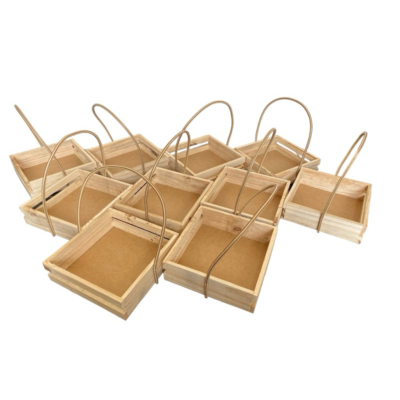 Cesta de Madeira Kit com 10 Bandeja de Pinus 22X22X7cm , Bandeja para Presentes e Embalagens