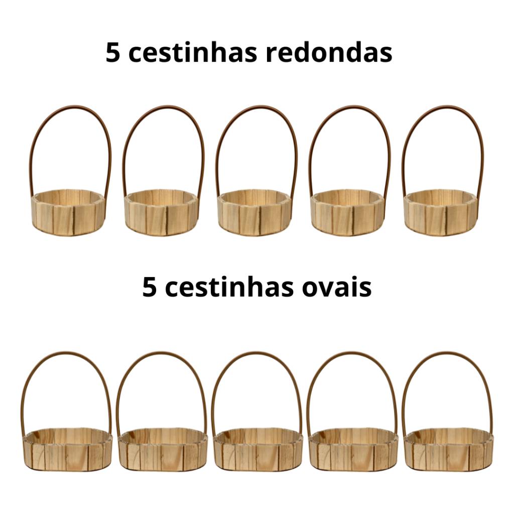 Kit Com 10 Cestinha De Madeira 5 ovais e 5 redondas - Presentes, Embalagem