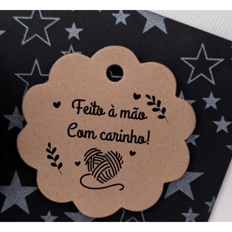 Tags Papel Kraft Crochê Feito a mão com Carinho