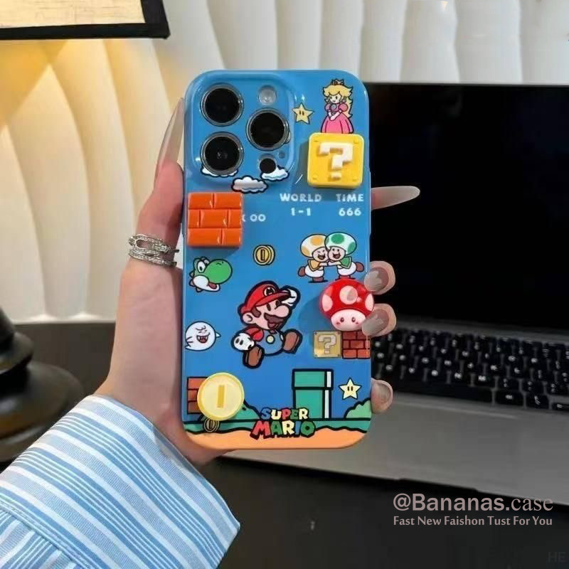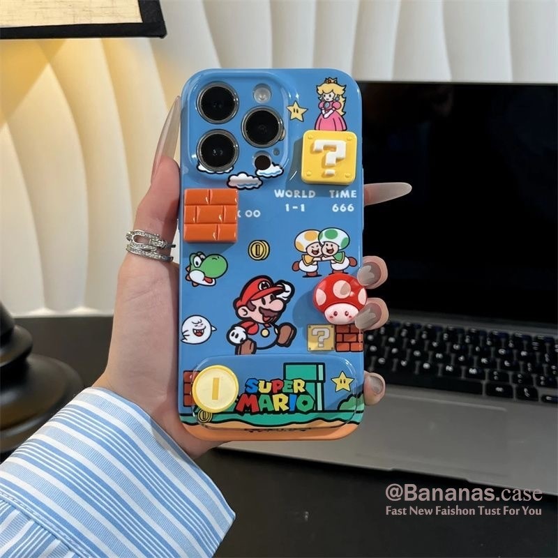 Compatível Com iPhone 16 15 14 13 12 11 Pro Max X Xr Xs 7 8 Plus SE2020 Capa De Telefone 3D DIY Cartoon Anime Mario + St