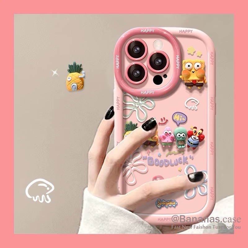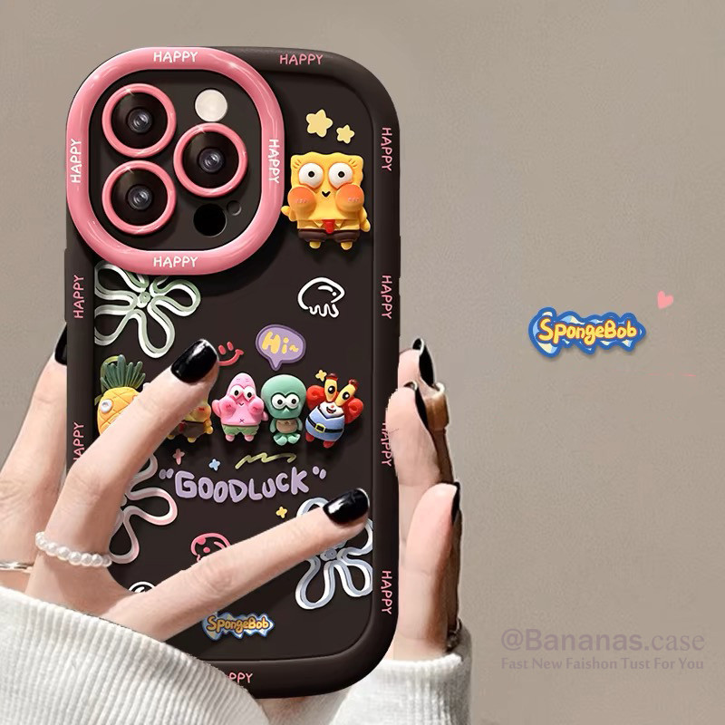 iPhone 17 16 15 14 13 12 11 Pro Max X Xr Xs 7 8 Plus Caso De Telefone 3D DIY Dos Desenhos Animados Bob Esponja Capa Maci