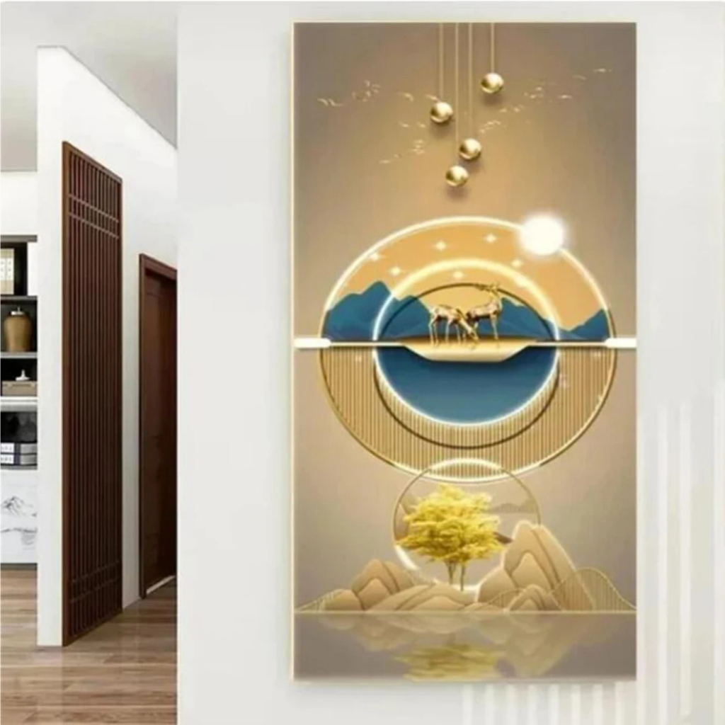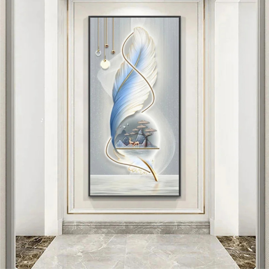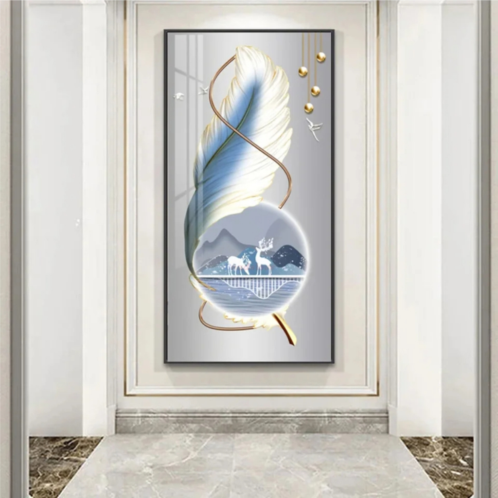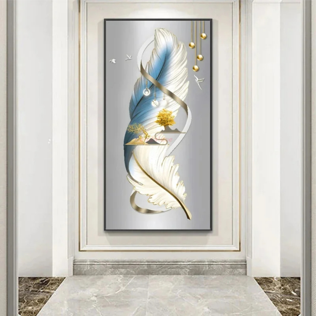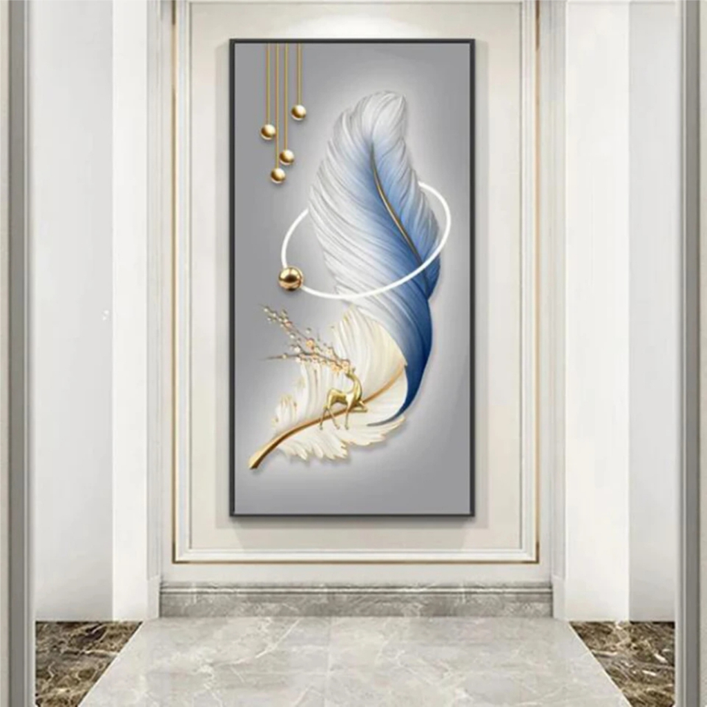 Quadros Decorativos 1 Peça Grande Pintura Diamante de Abstrato, Árvore De Ouro, Veados, Pena Branca, Mosaico Bordado, Completo Strass, Arte Nórdica, W543