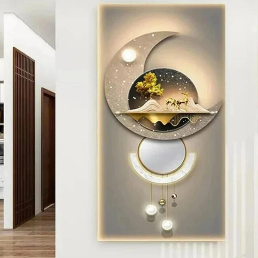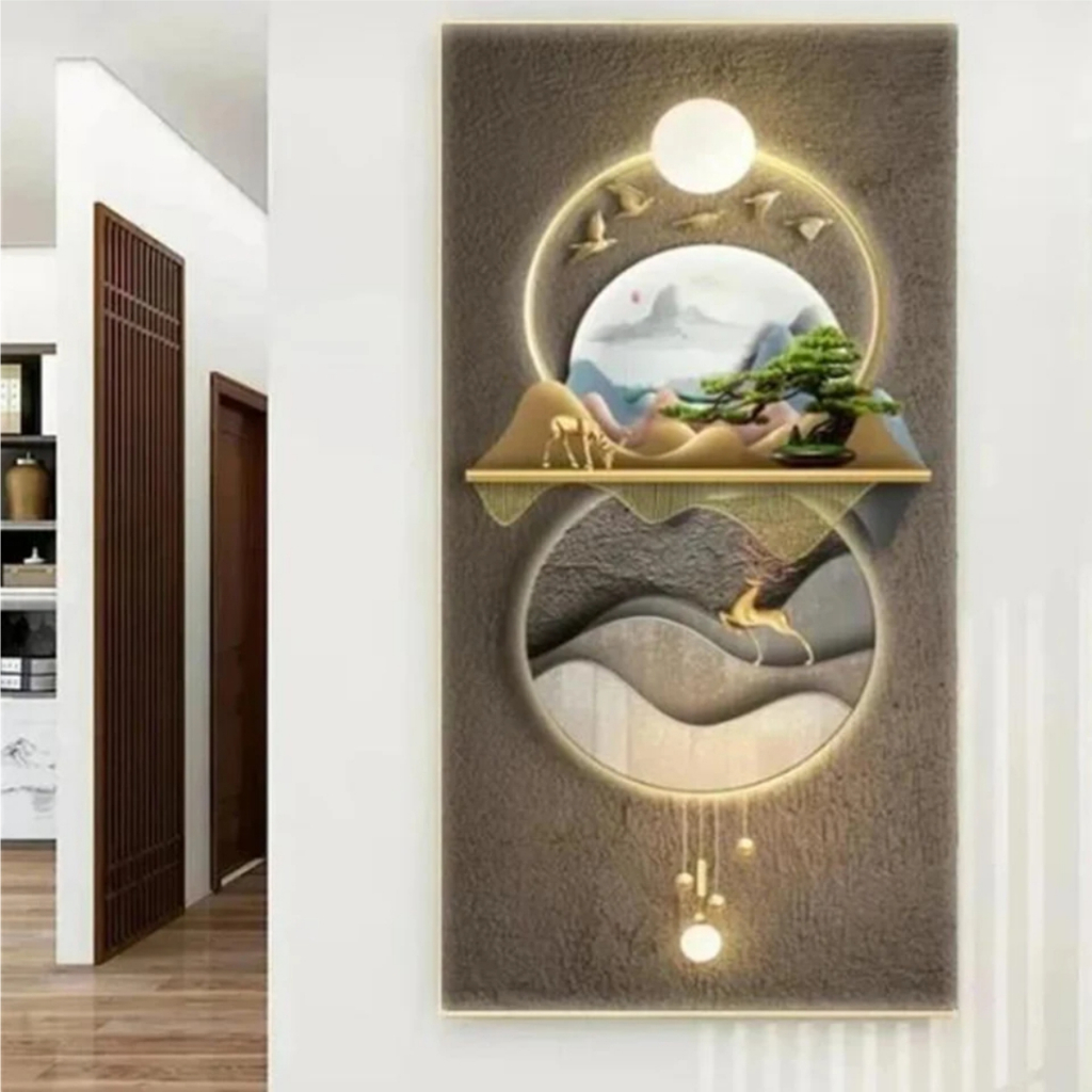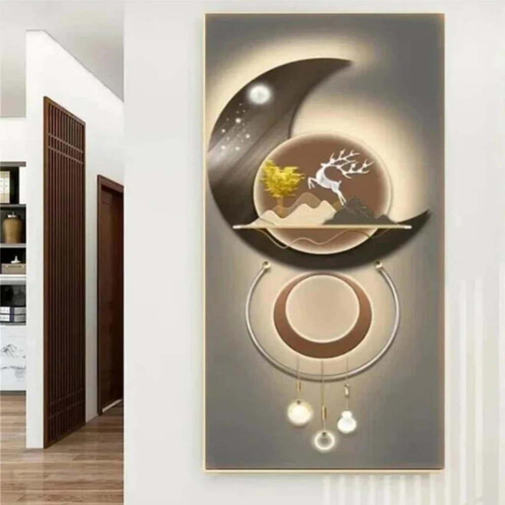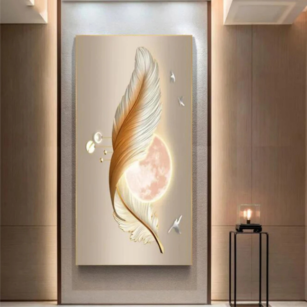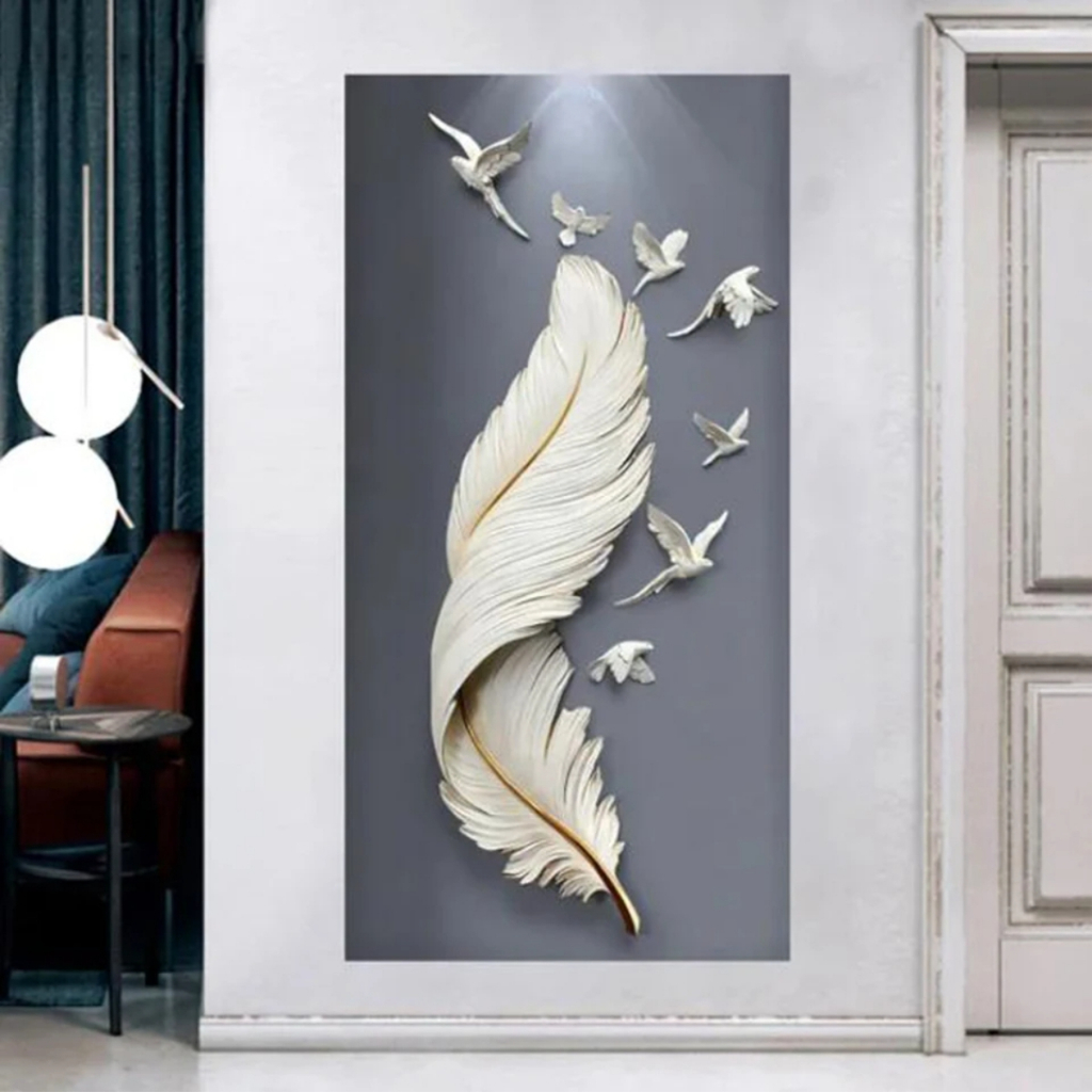 Quadros Decorativos 1 Peça Grande Pintura Diamante de Abstrato, Árvore De Ouro, Veados, Pena Branca, Mosaico Bordado, Completo Strass, Arte Nórdica, W543