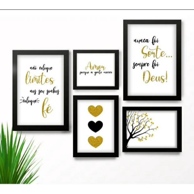 Quadros Decorativos 5 Peças Frases bAmor Porque A gente Merece