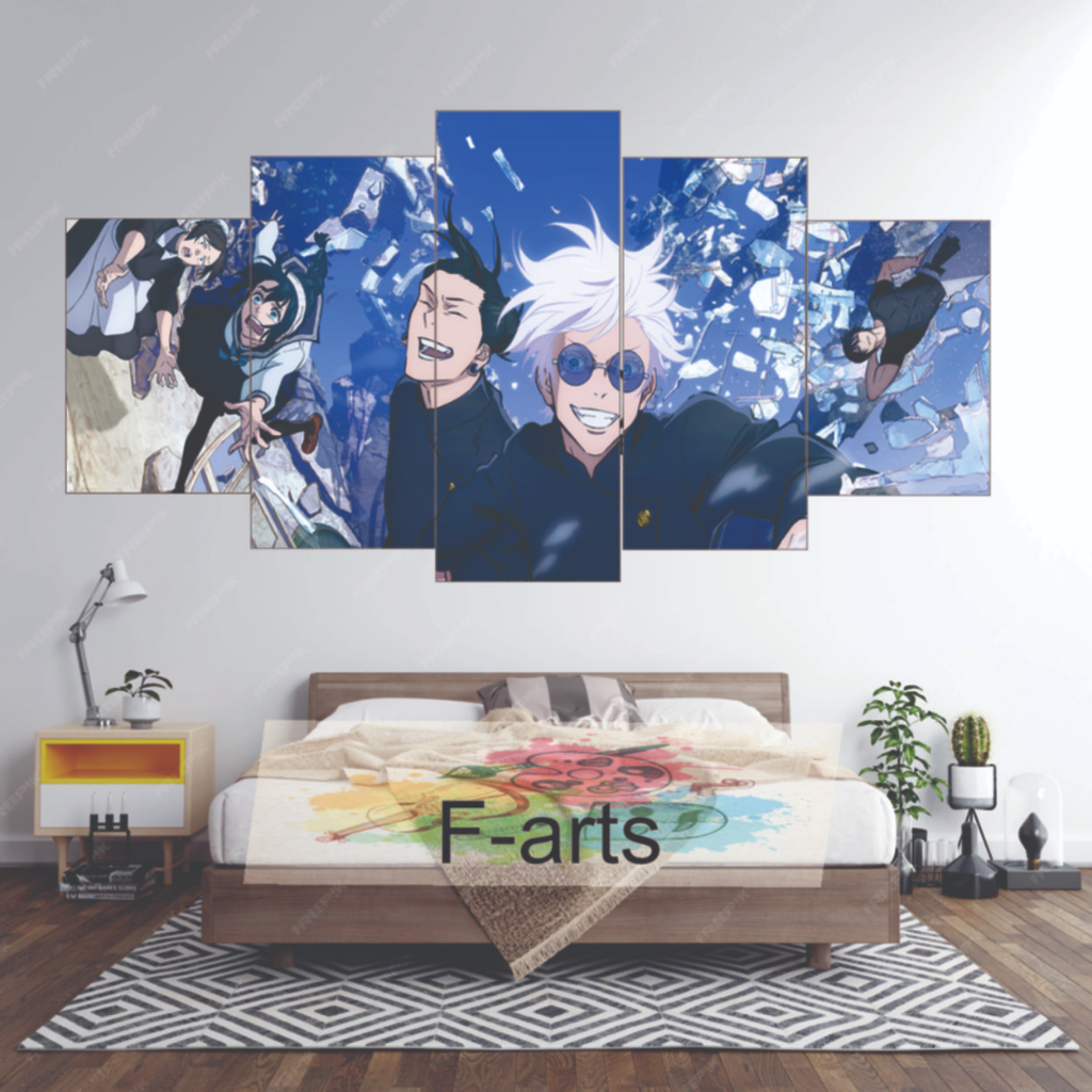Quadro Decorativo Jujutsu no kaisen 5 peças Decoração Animes