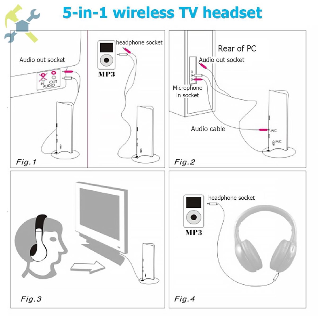 Fone De Ouvido Para TV Sem Fio 5 Em 1 Com Transmissor RF 2.4G Confortável Assistir SHOPTKC6386