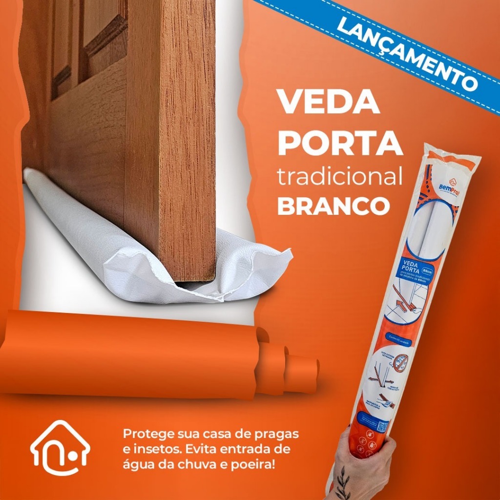 Veda Porta Protetor Rolinho 80, 90 e 100cm Impermeável Proteção Dupla Preto/Branco Tradicional