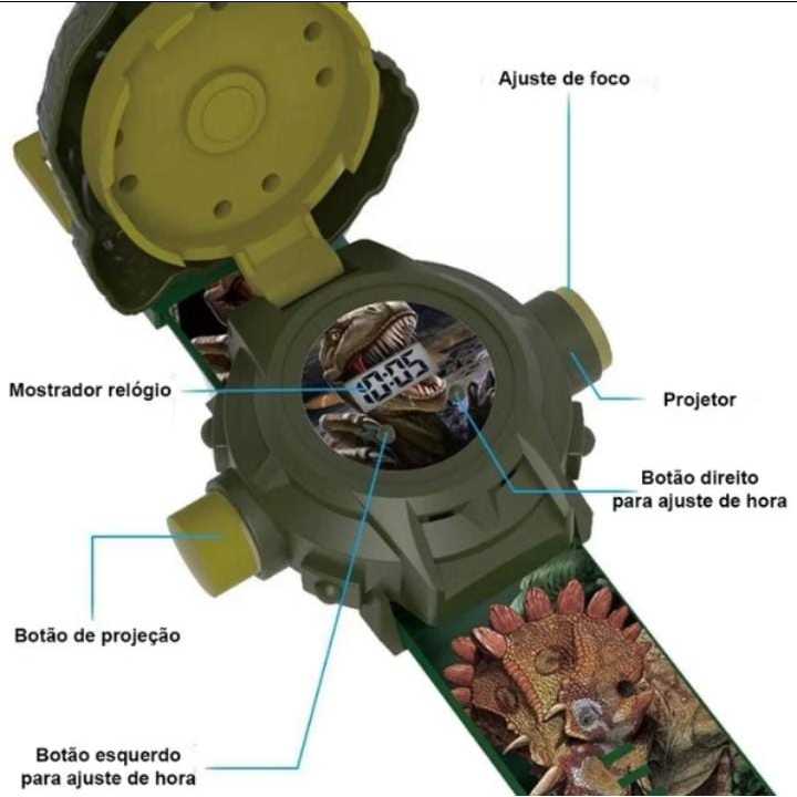 Relógio Infantil Criança Dinossauro Brinquedo Relógio de Projeção 3D Relógio Dinossauro