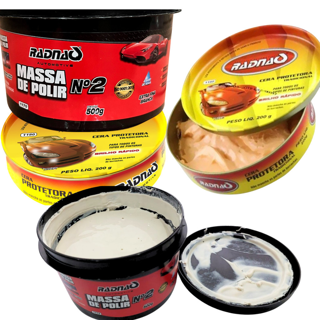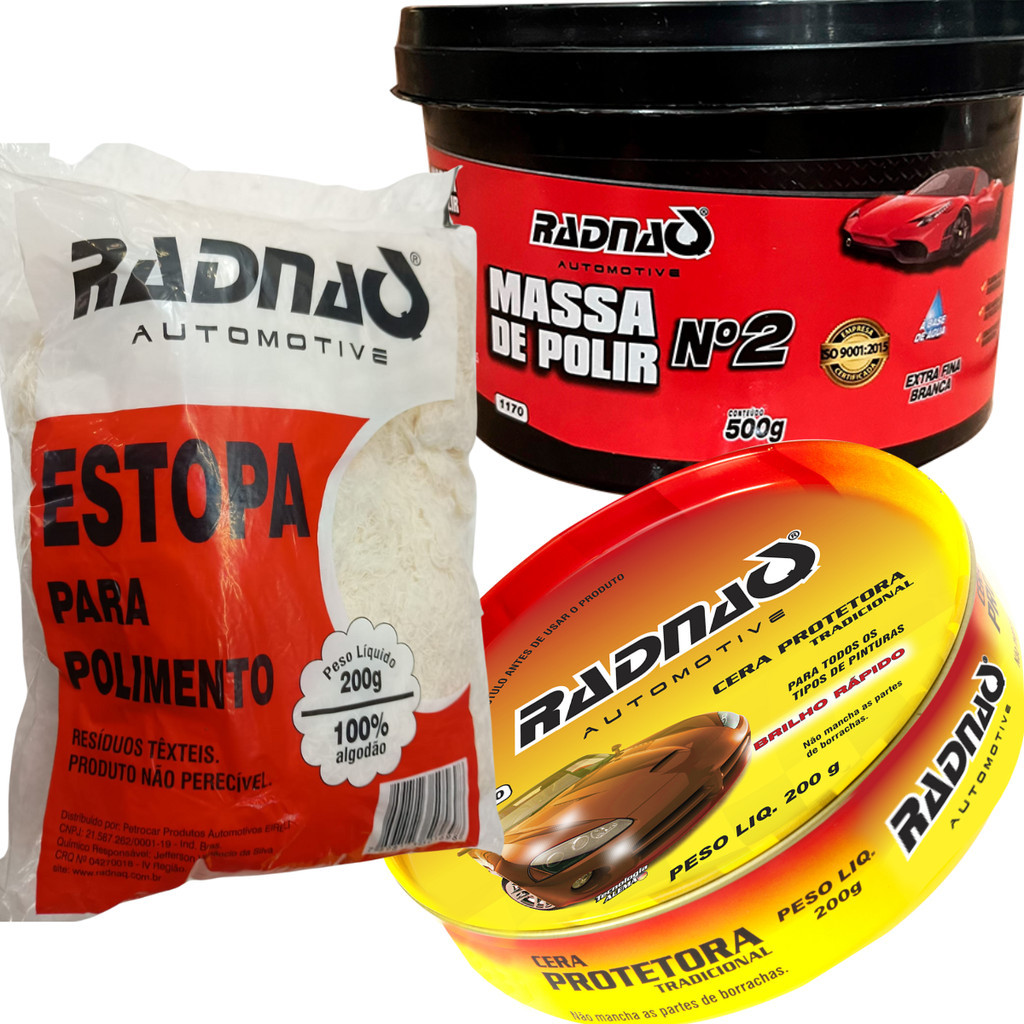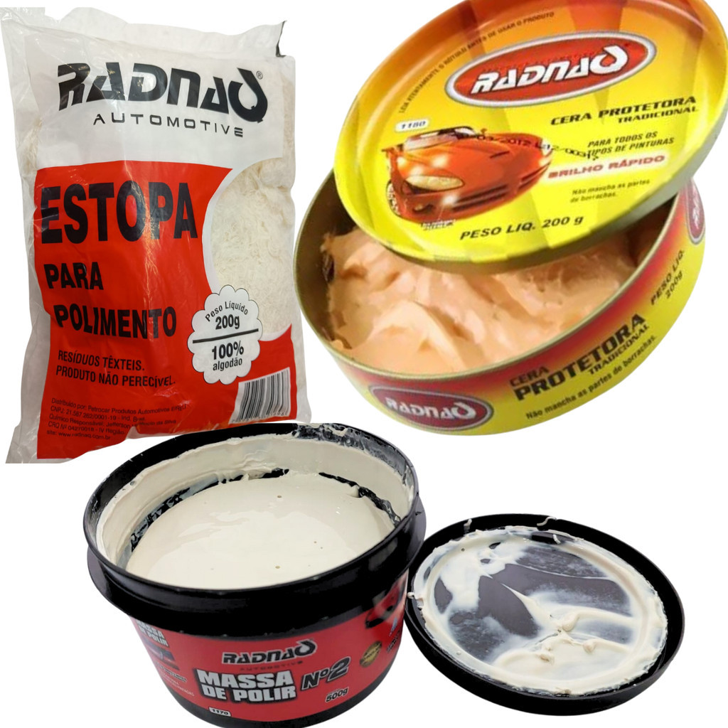 Kit Massa De Polir Nº2 500g + Cera Protetora + Brilho e Estopa para Polir