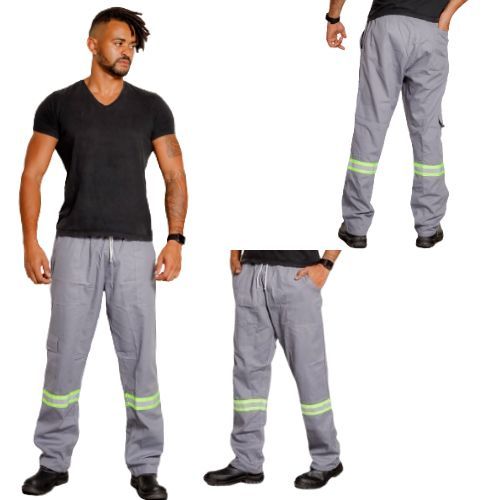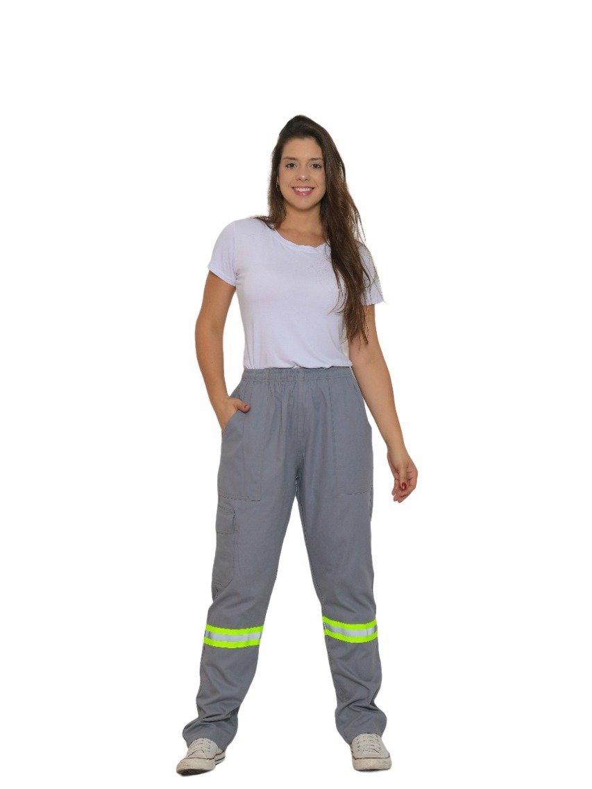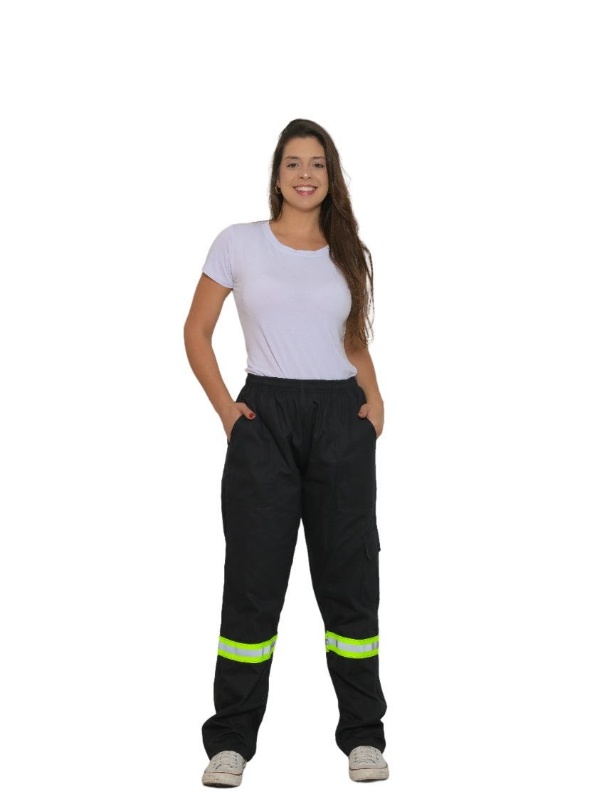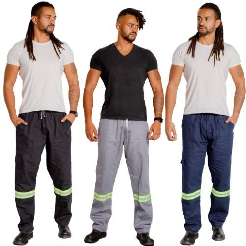 Kit 2 Calça Cargo Brim Profissional Faixa Refletiva Eletricista 38