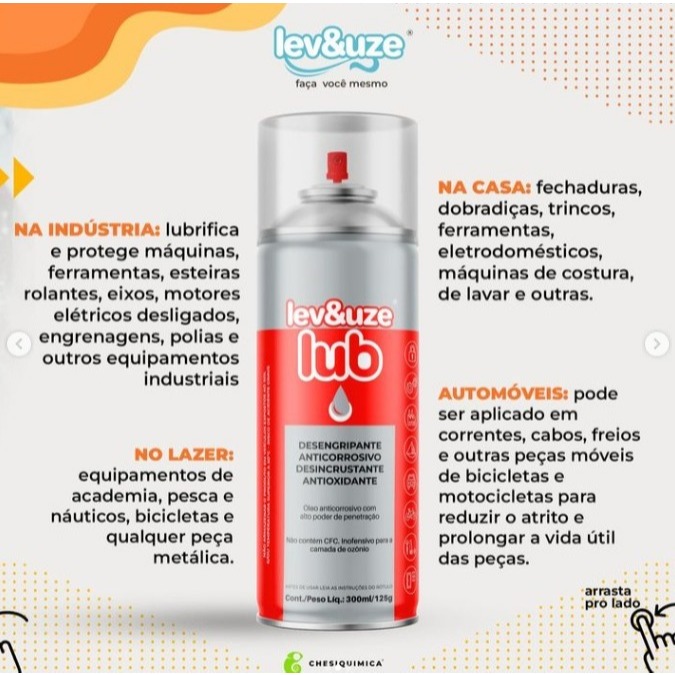 Desengripante Óleo Lubrificante Antiferrugem Anticorrosivo Multiuso 250ml spray Peg&Uze