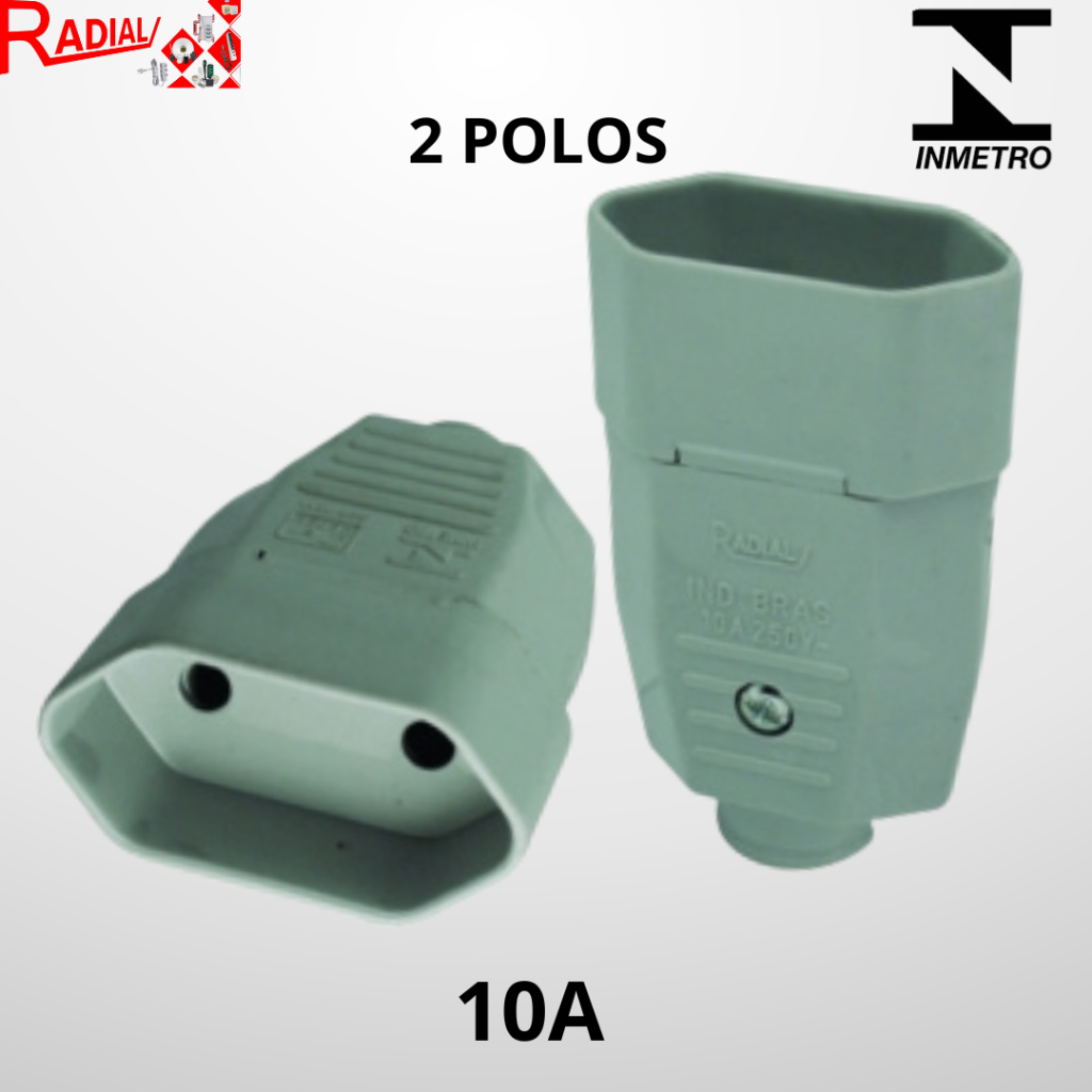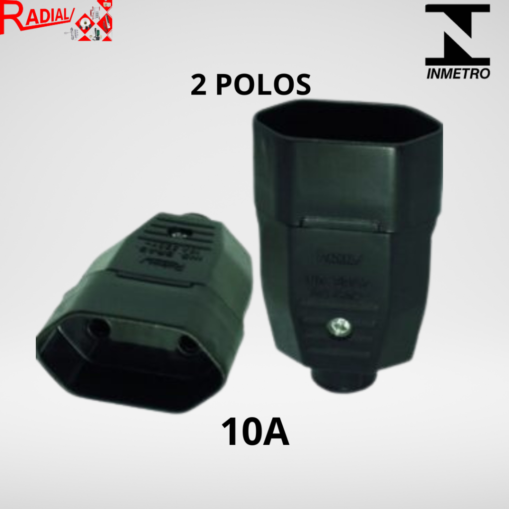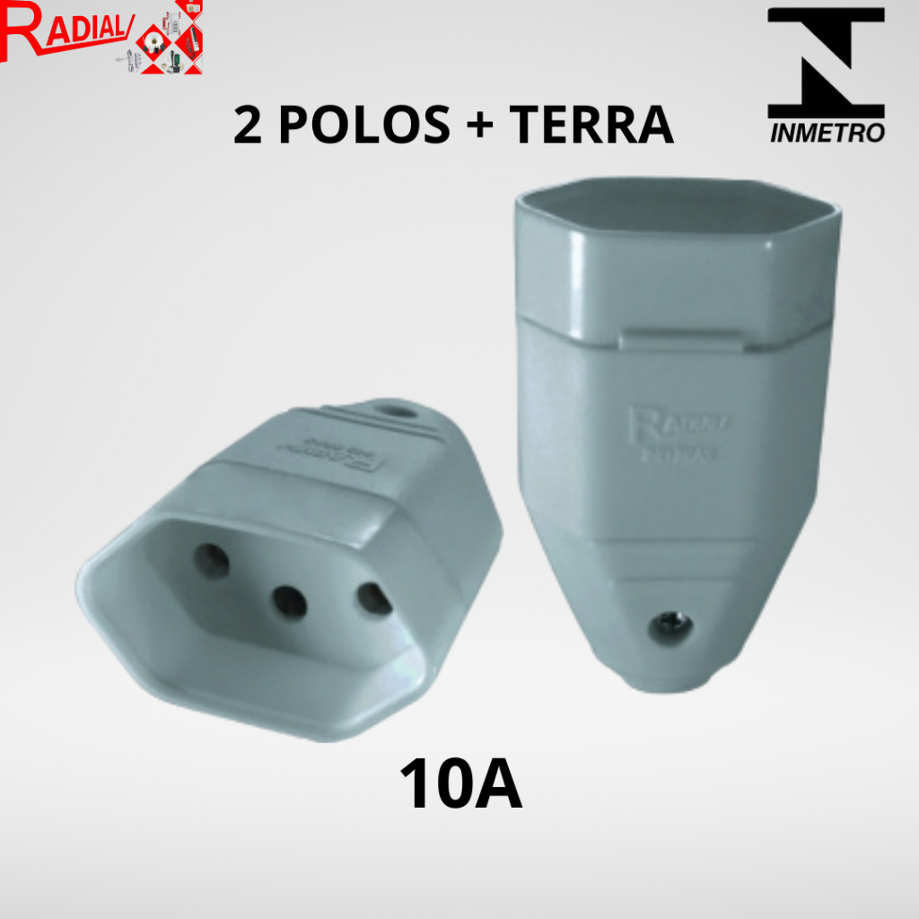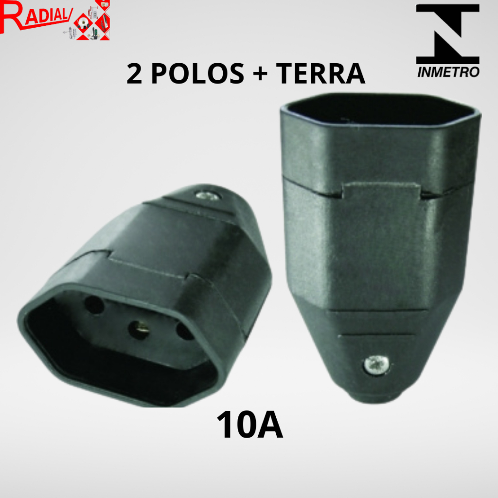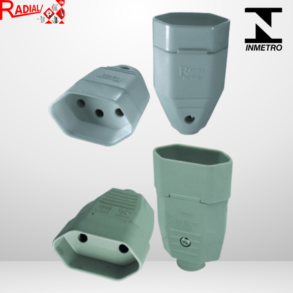 KIT 5, 10 Plugue Fêmea Preto/Cinza 2 Pólos OU 2 Pólos + Terra 10A/20A Maciço Radial
