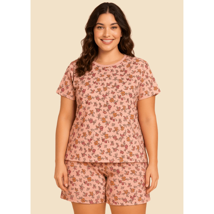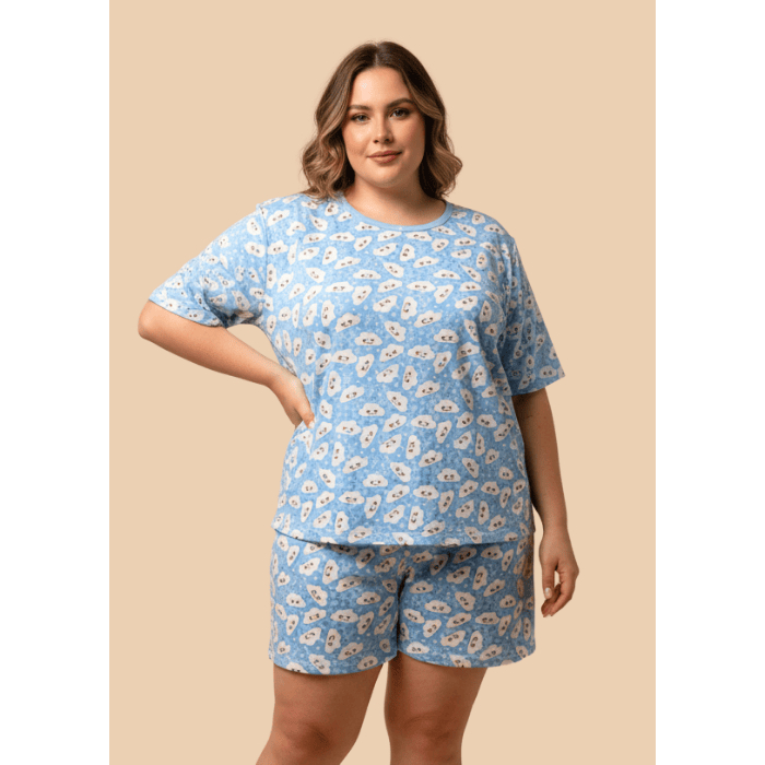Pijama Meia coxa Feminino Plus Size Estampado