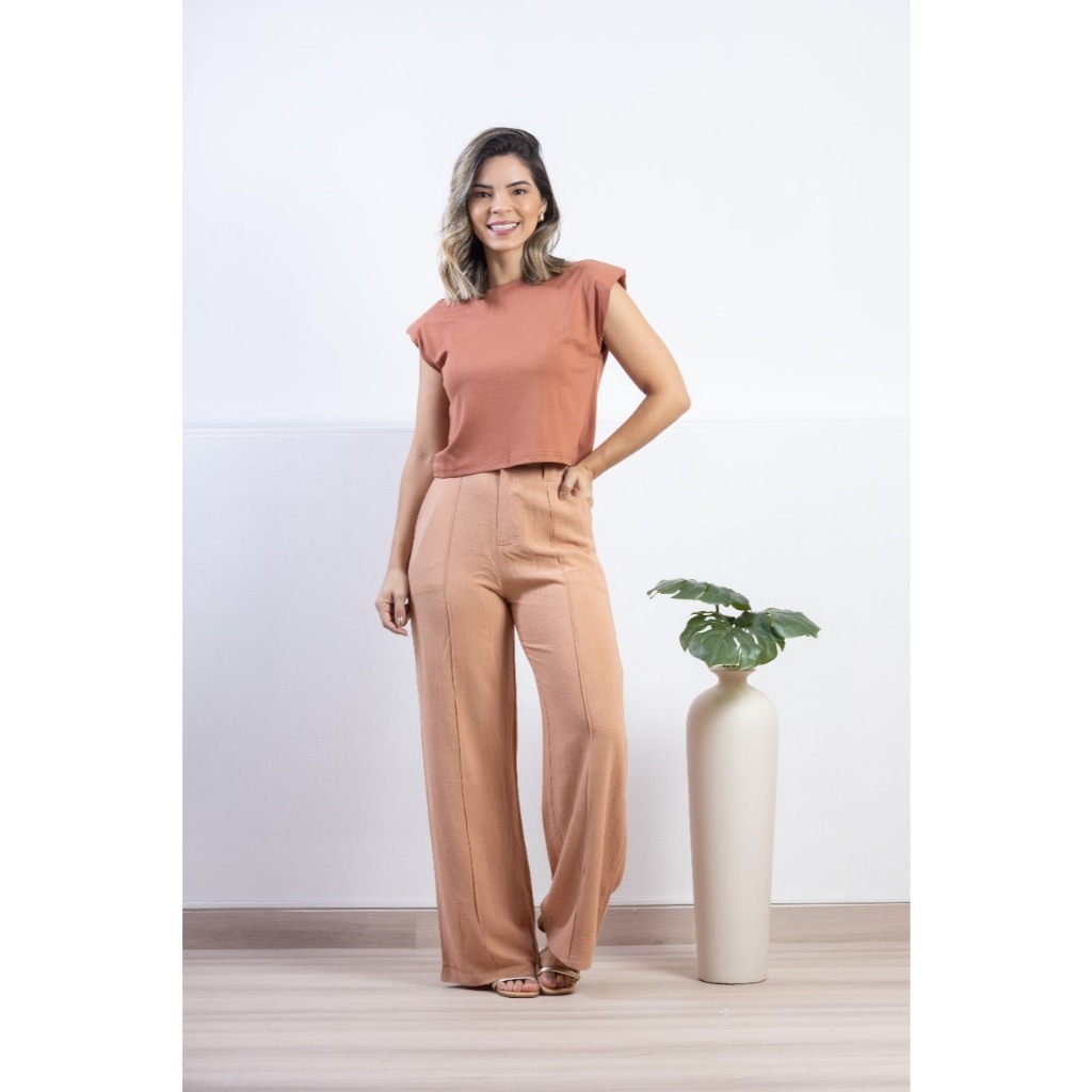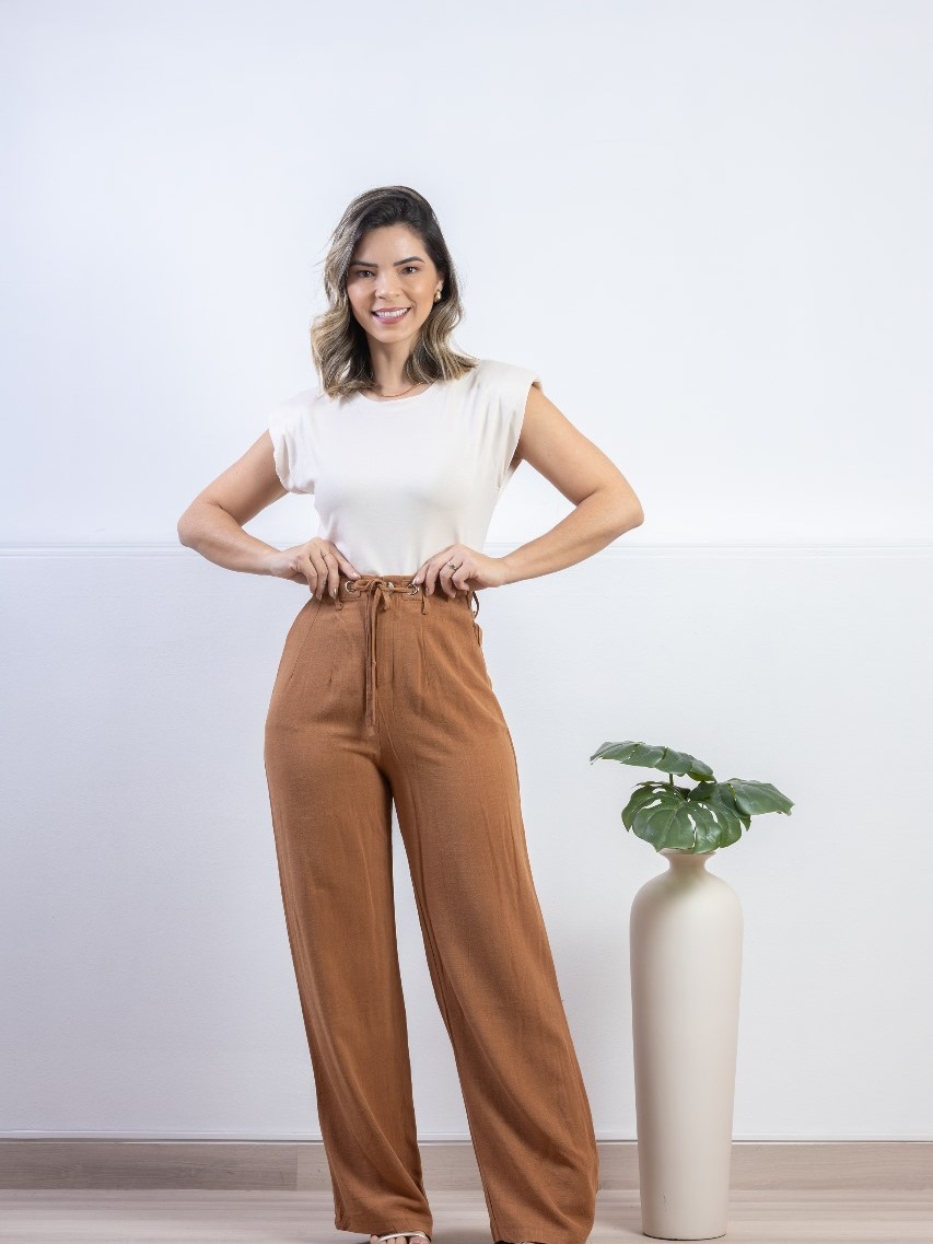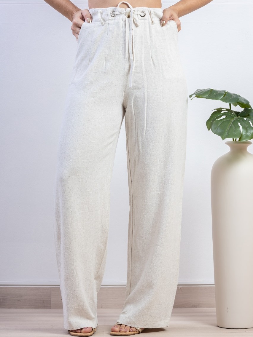 CALÇA PANTALONA EM LINHO COM ELÁSTICO L103
