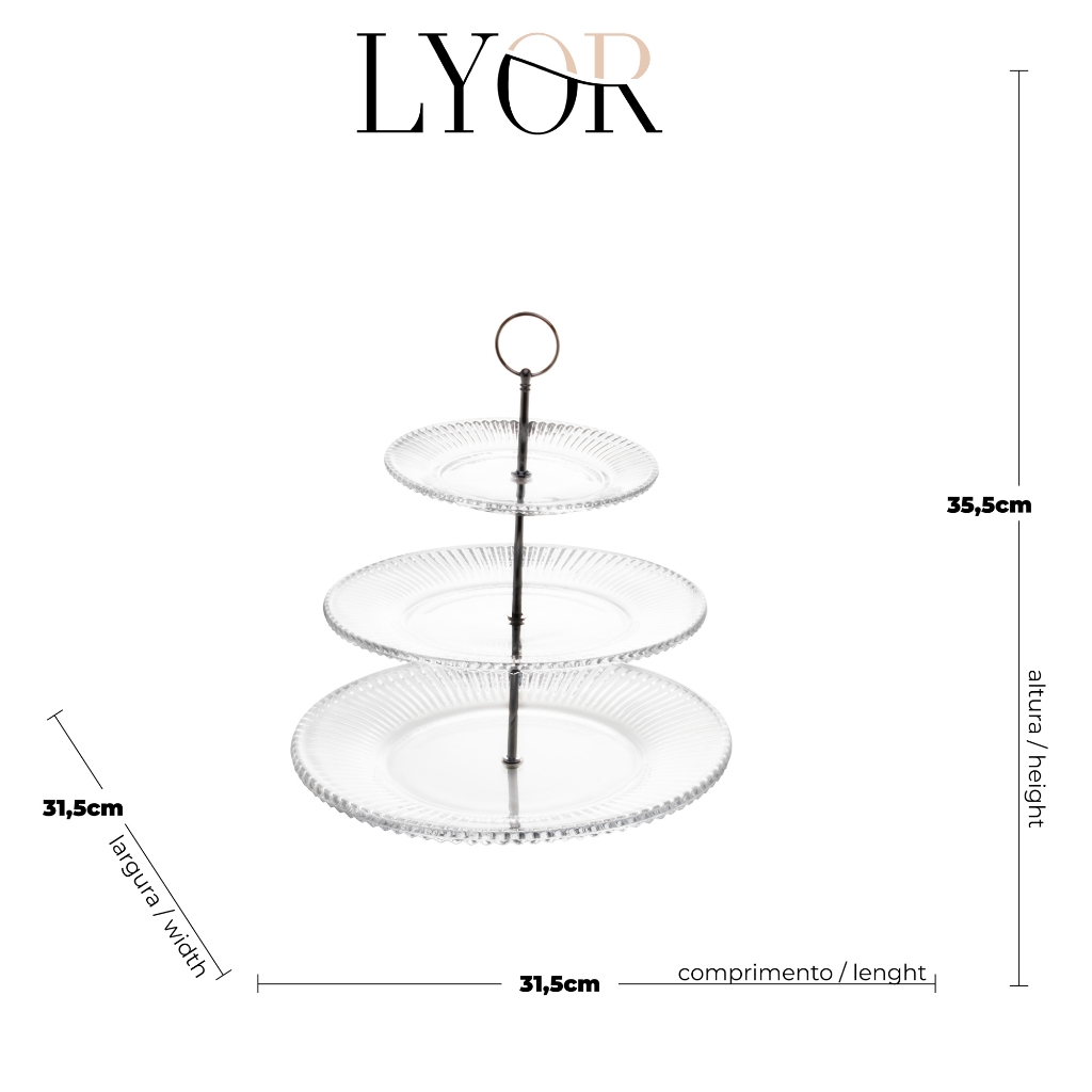 Porta Doces 3 Andares de Cristal Renaissance 31,5cm - Lyor
