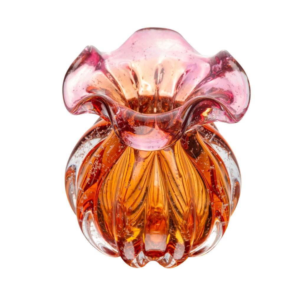 Vaso de Vidro Italy Bubble Rosa e Âmbar 10cm x 11cm