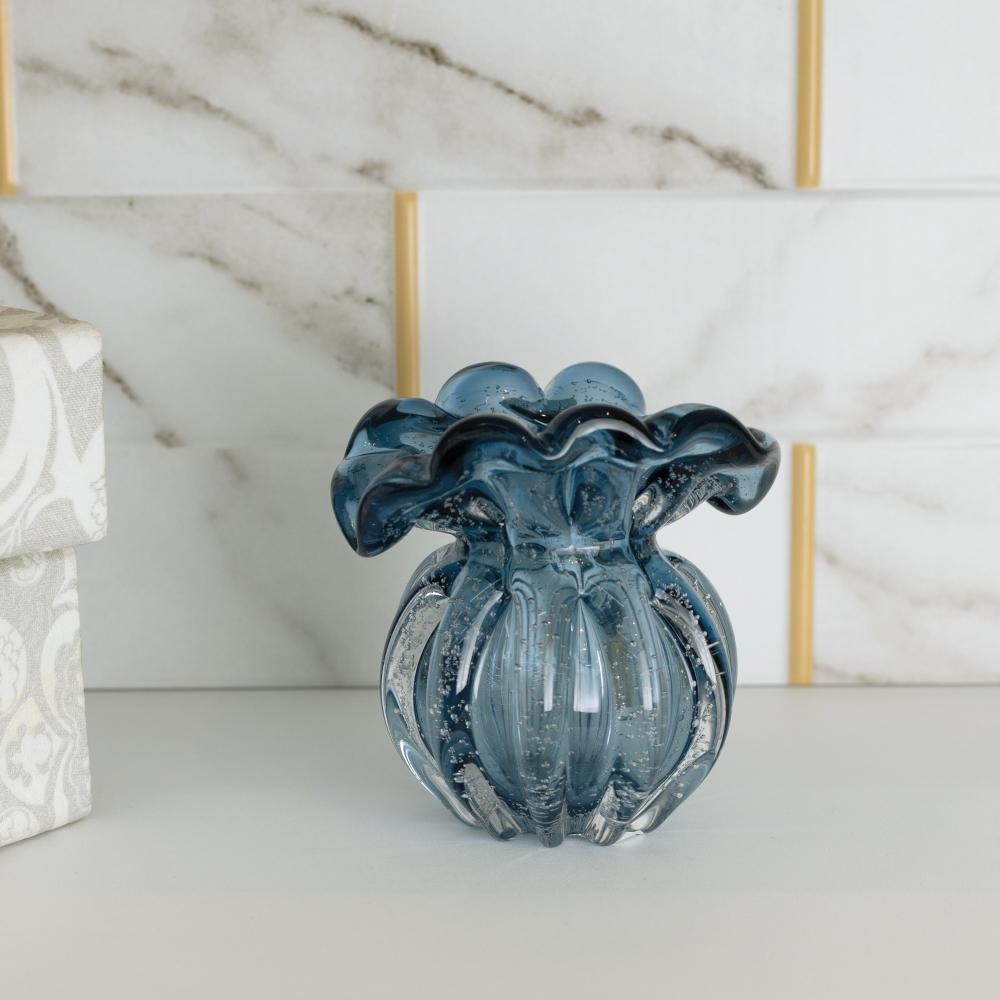 Vaso Lyor Italy de Vidro Azul 11cm x 9cm x 11,5cm