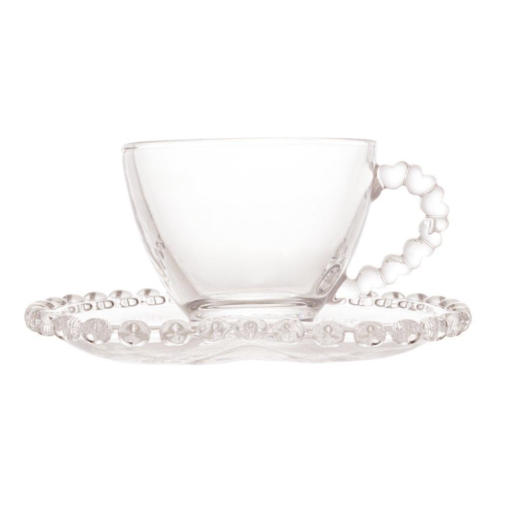 Xícara de Café com Pires Lyor Coração de Cristal Incolor