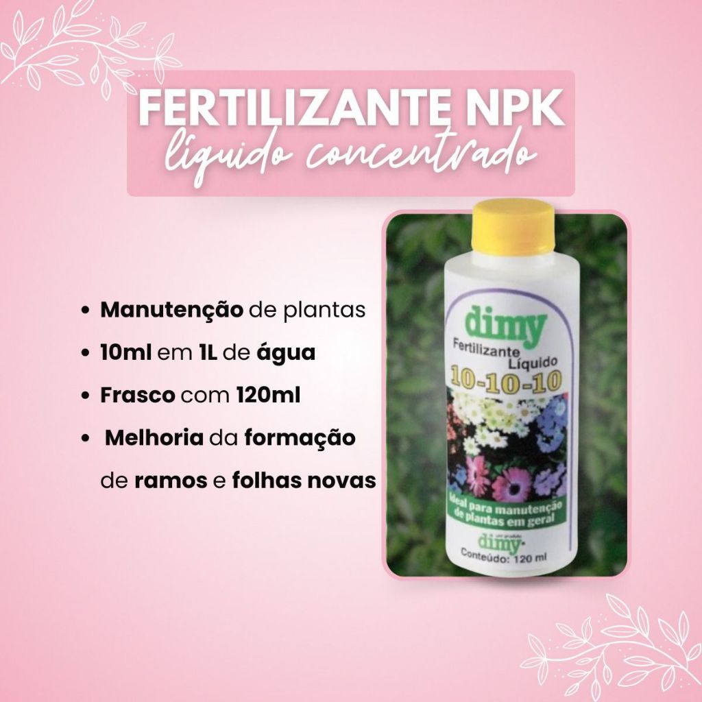 Adubo NPK 10-10-10 Dimy Fertilizante Mineral Misto Líquido 120ml P/ Todos Os Tipos de Plantas