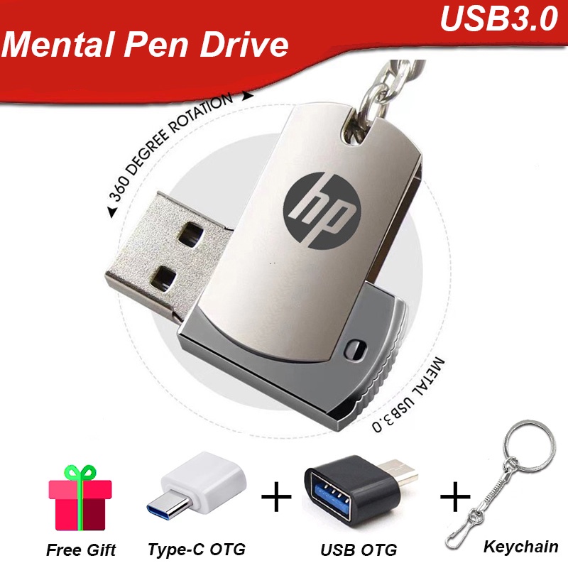 1TB 2TB HP Pen Drive mental USB Flash De Alta Velocidade Disco U Polegar Salto Unidade Portátil De Memória De Armazenamento 128GB 256GB 512GB Minúscula Com Chaveiro