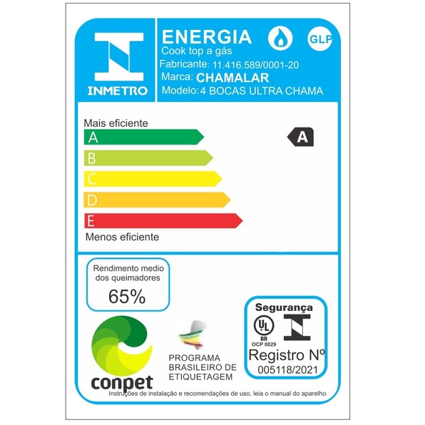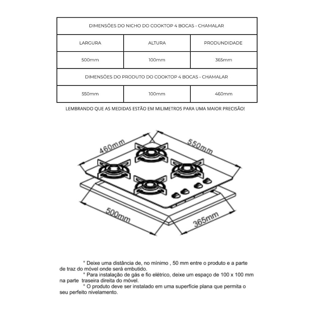 Fogão Cooktop Premium Gás 4 Bocas Ultra Chama 127v/220v Preto