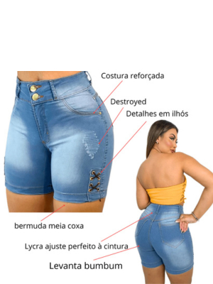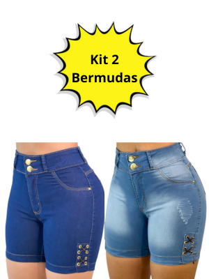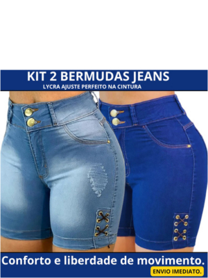 Kit 2 bermuda jeans feminina com lycra cintura Alta premium short jeans ultra confortável Meia Coxa
