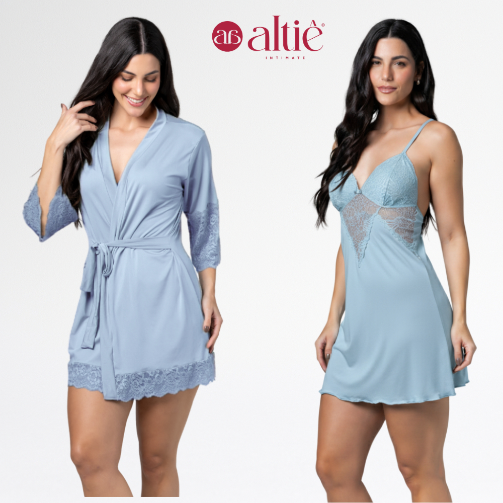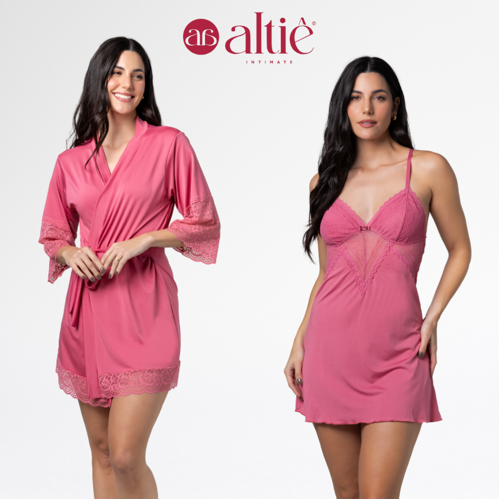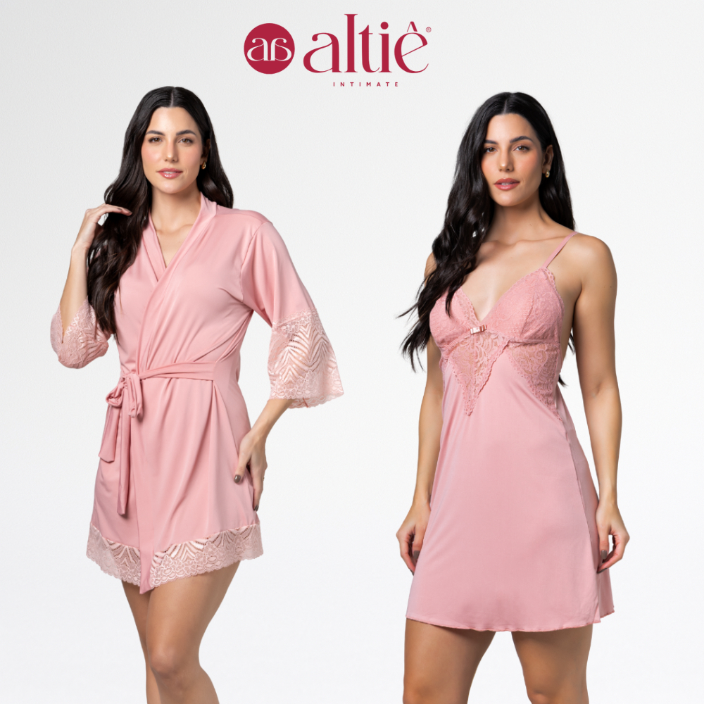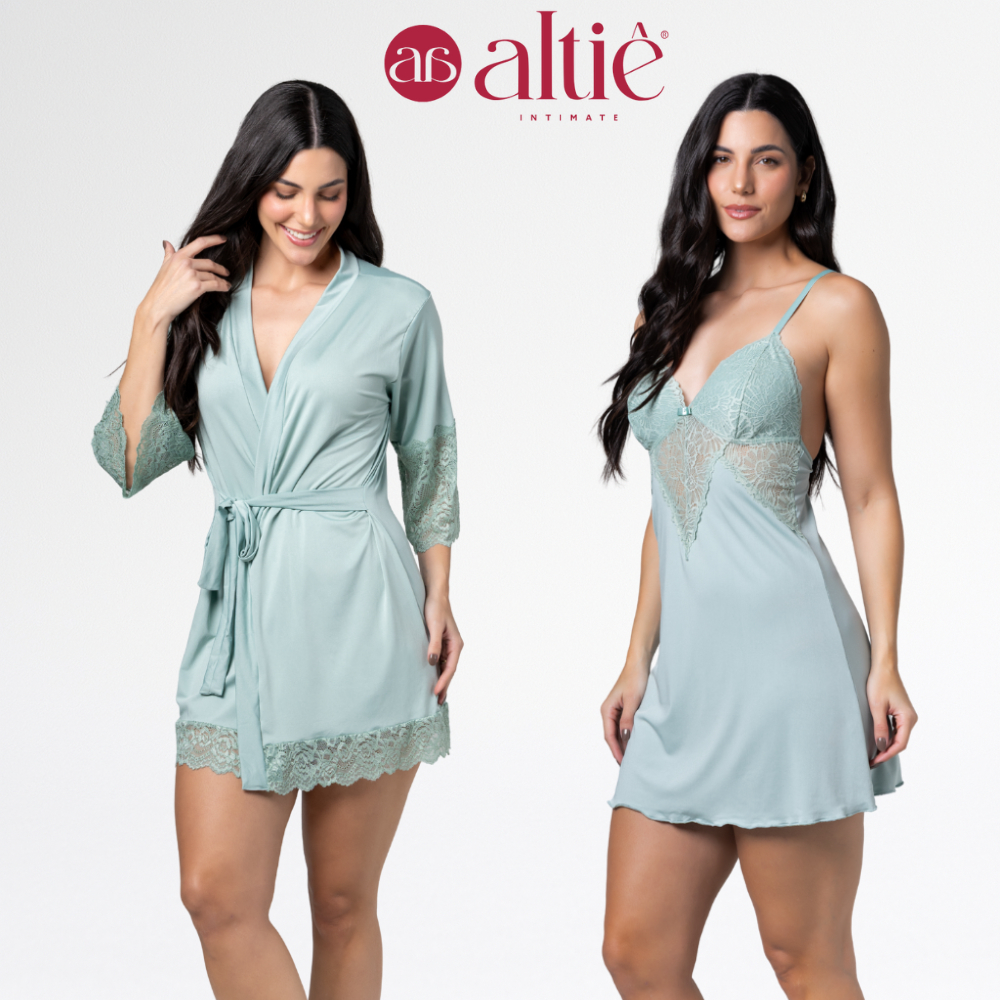 Kit Robe Curto Luxo Camisola Renda Elegante Feminina Confortável