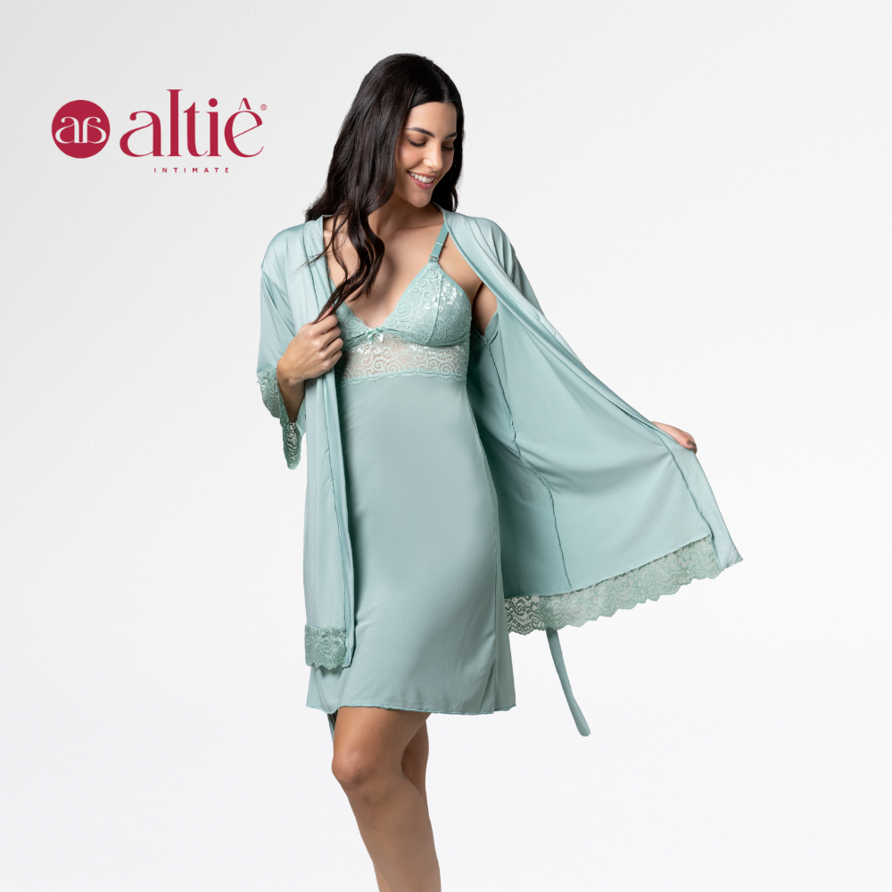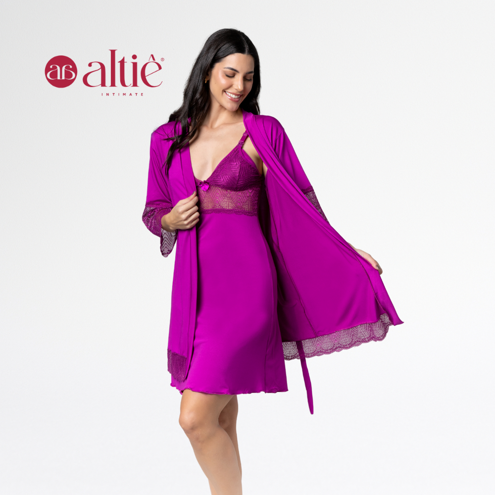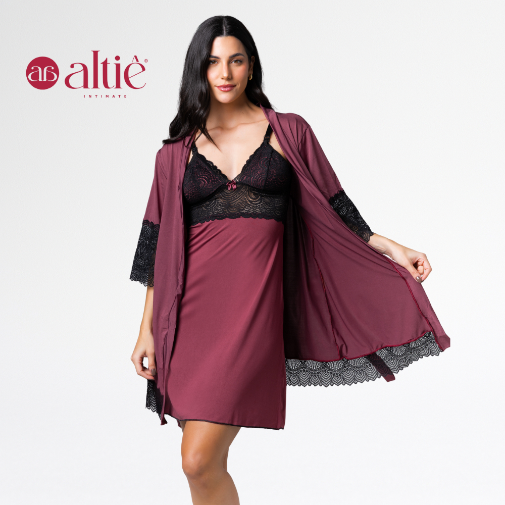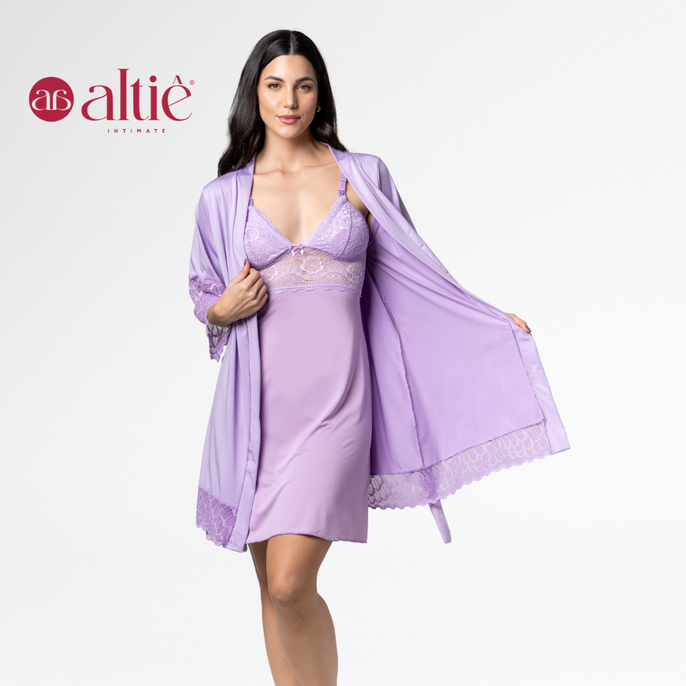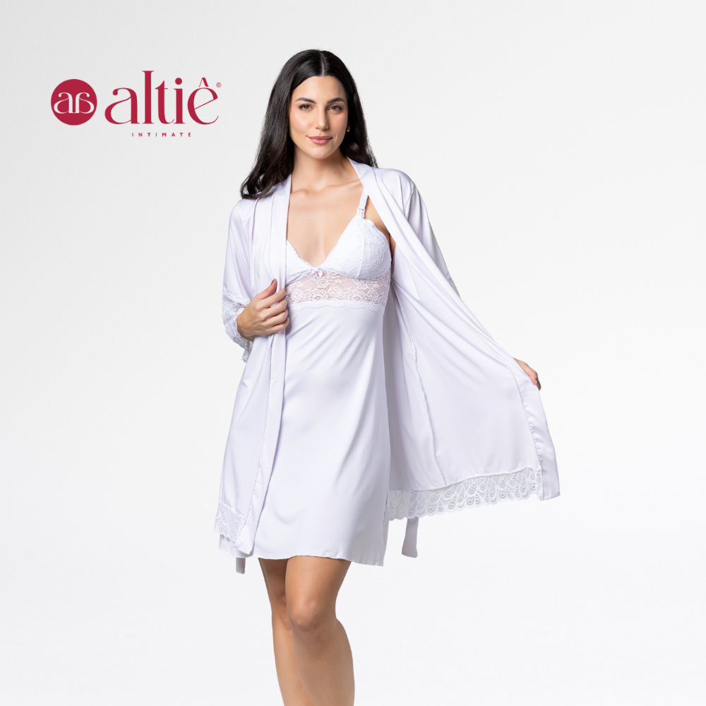 Kit Robe e Camisola Amamentação Curta Maternidade Pós-Parto Luxo