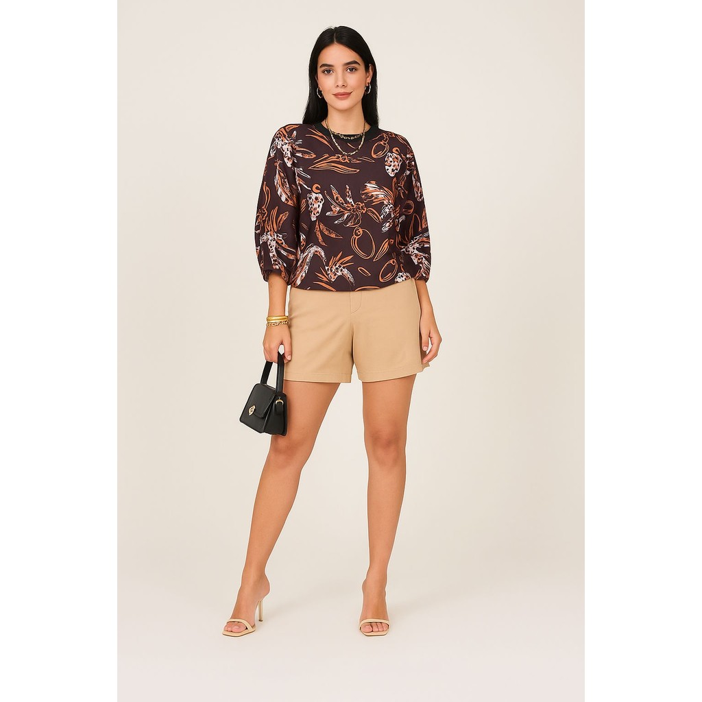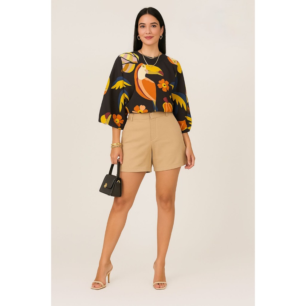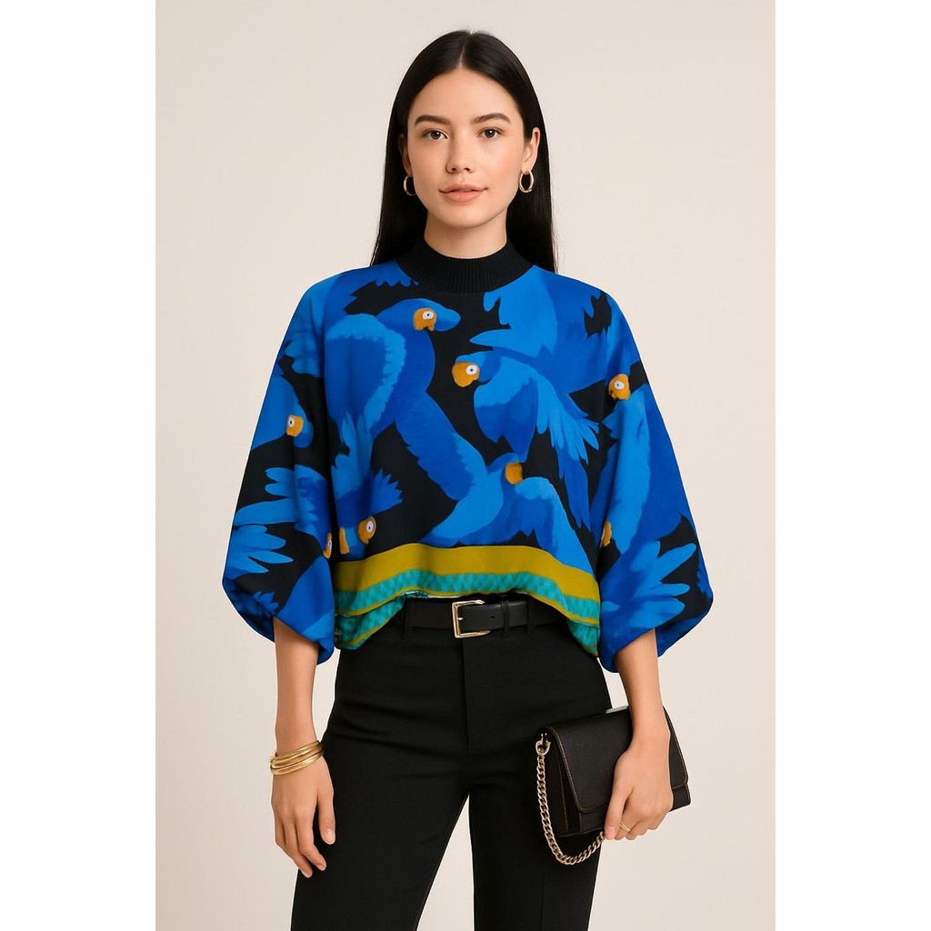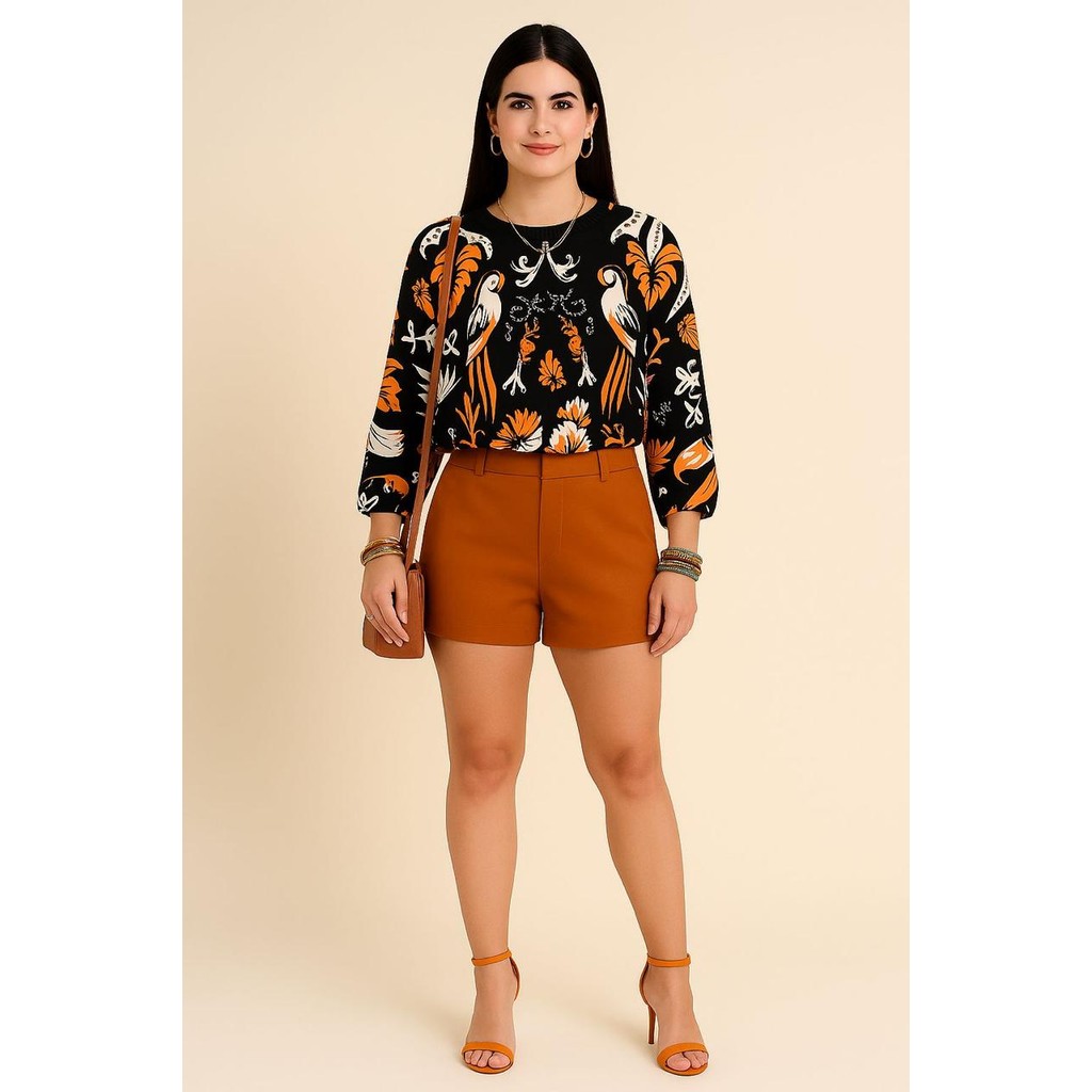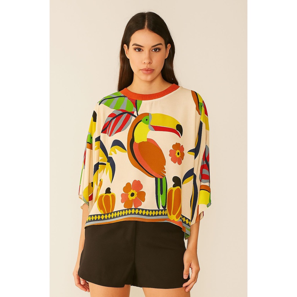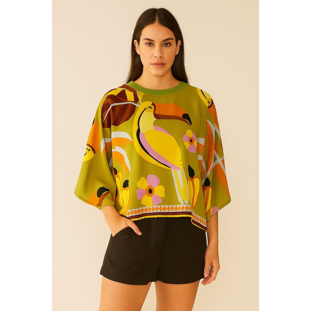 Blusa Feminina Estampada Elegante Inspiração Plus Size - T Shirt Manga Morcego 3/4