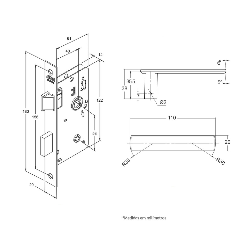 Fechadura Banheiro WC 823/35 Roseta Quadrada Oxidado Stam