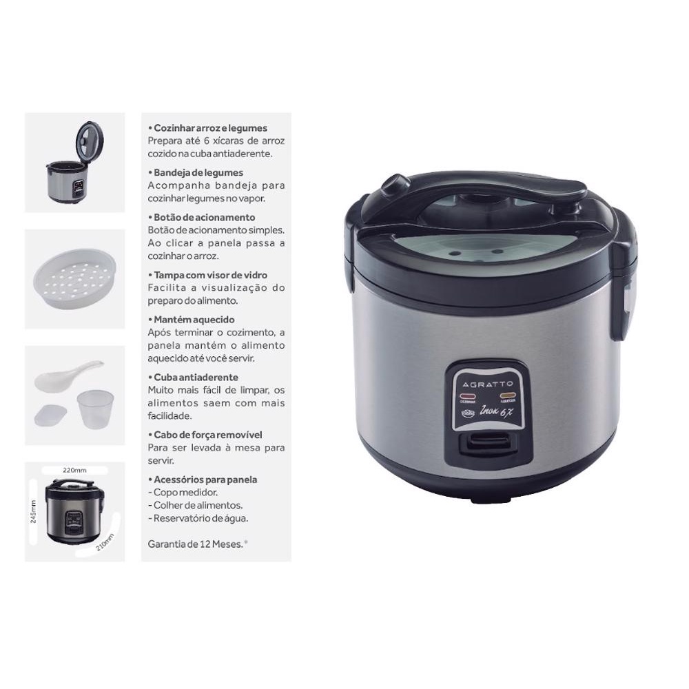 Panela Elétrica Arroz e Legumes Inox 6 Xícaras 400W 127V