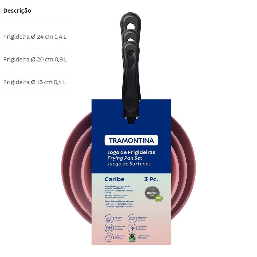 JOGO FRIGIDEIRAS TRAMONTINA 3PCS ROSA CARIBE ANTIADERENTE
