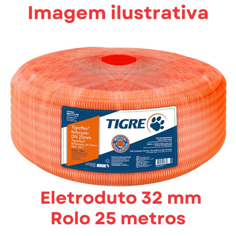 Mangueira Eletroduto Reforçado Corrugada 32mm / 1 Polegada TIGRE Rolo 25 Metros