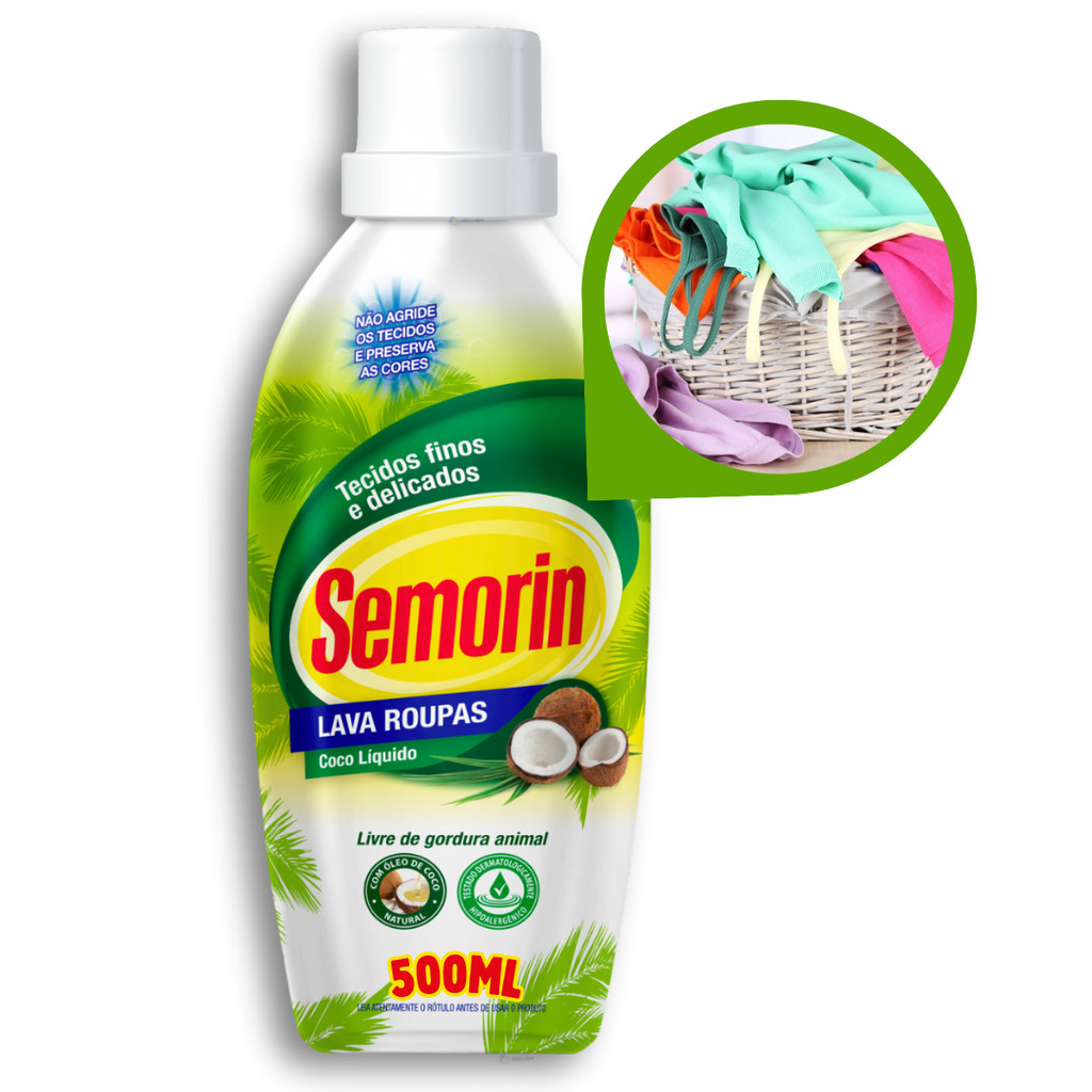 500ml Lava Roupas Sabão Líquido Coco Bebês Jeans Pretas Escuras Todos Tecidos Mantém Cores Semorin