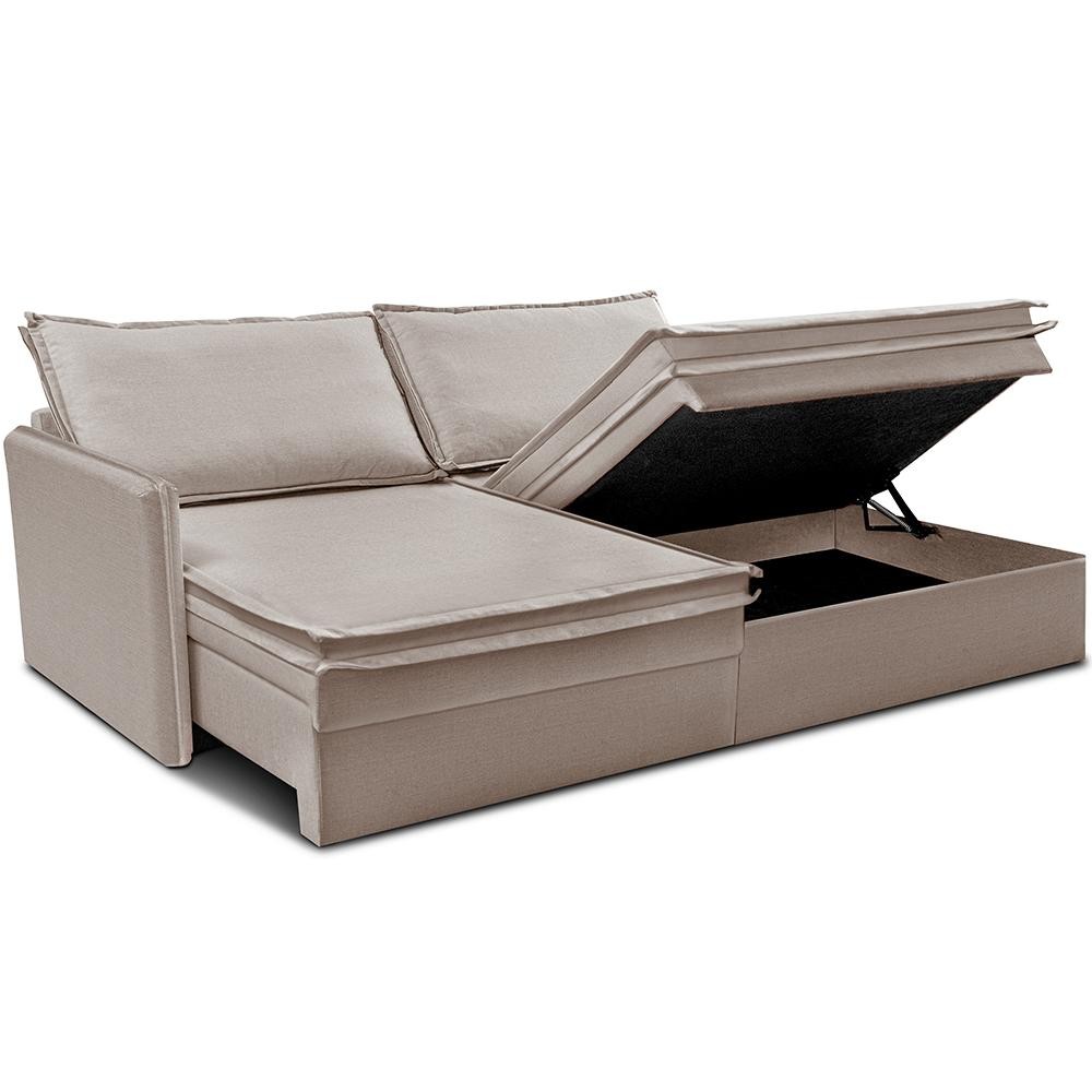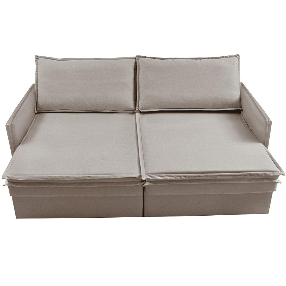 Sofá Sem Caixa Retrátil Baú 1,55m Lounge Linho Bege Claro Cama inBox