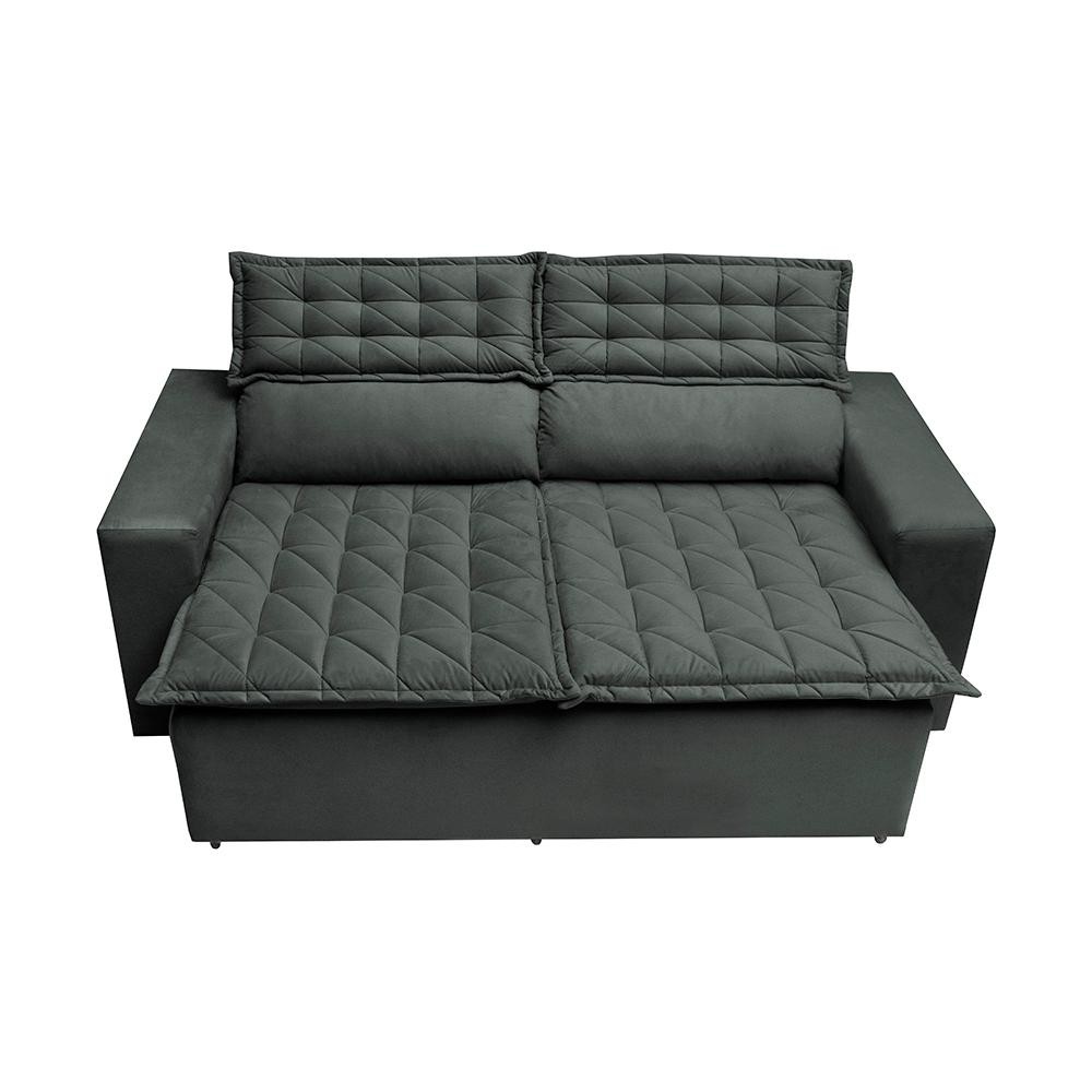 Conjunto de Sofá 3 e 2 Lugares Retrátil e Reclinável Cama inBox Slim 2,00x1,50m Velusoft Cinza