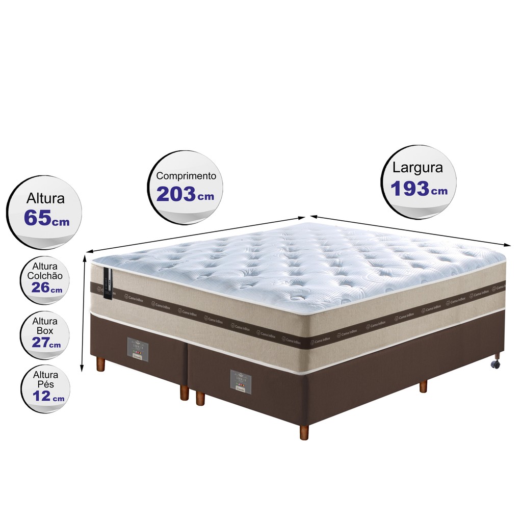 Conjunto Cama Box King de Molas Ensacadas Cama inBox Select Basic 193x203x65 Bege