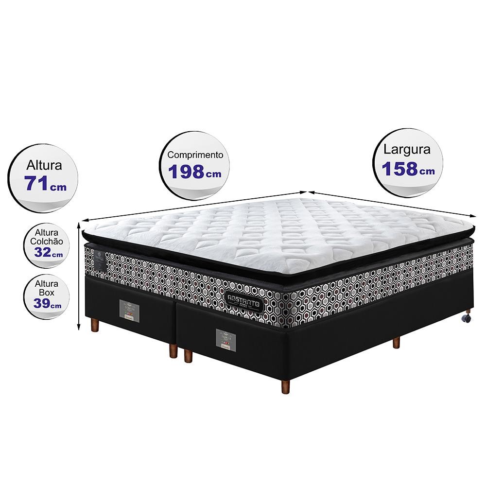 Cama Box Queen Colchão Pillow Top + Box 158x198x70 Molas Ensacadas Cama inBox Abstrato