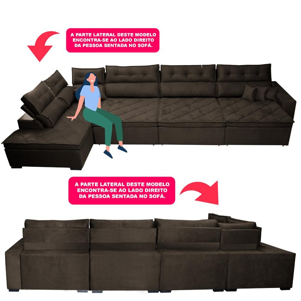 Sofá de Canto 4,80x2,36m Retrátil e Reclinável com Molas Cama inBox Platinum Esquerdo Suede Café