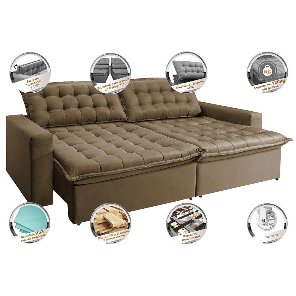 Sofá Sem Caixa Retrátil Reclinável 2,75m Cama inBox França Velusoft Castor