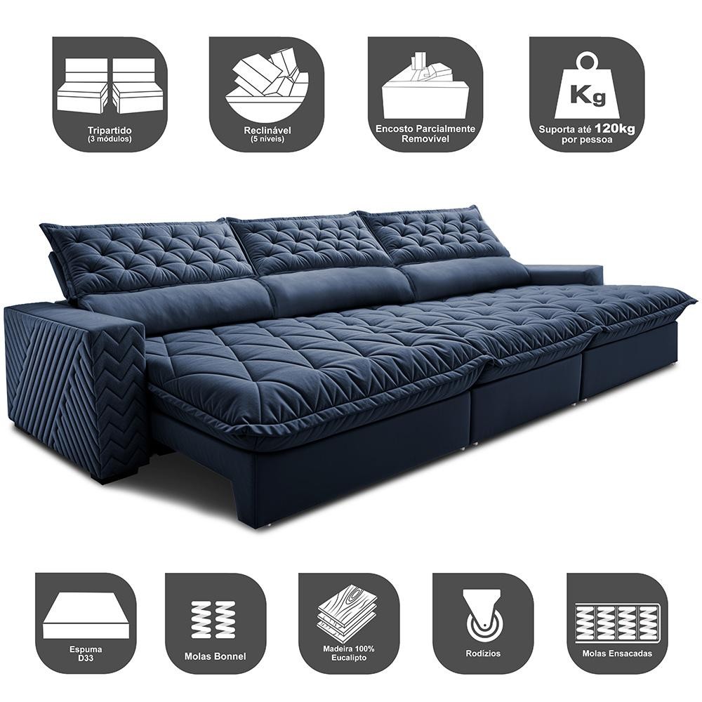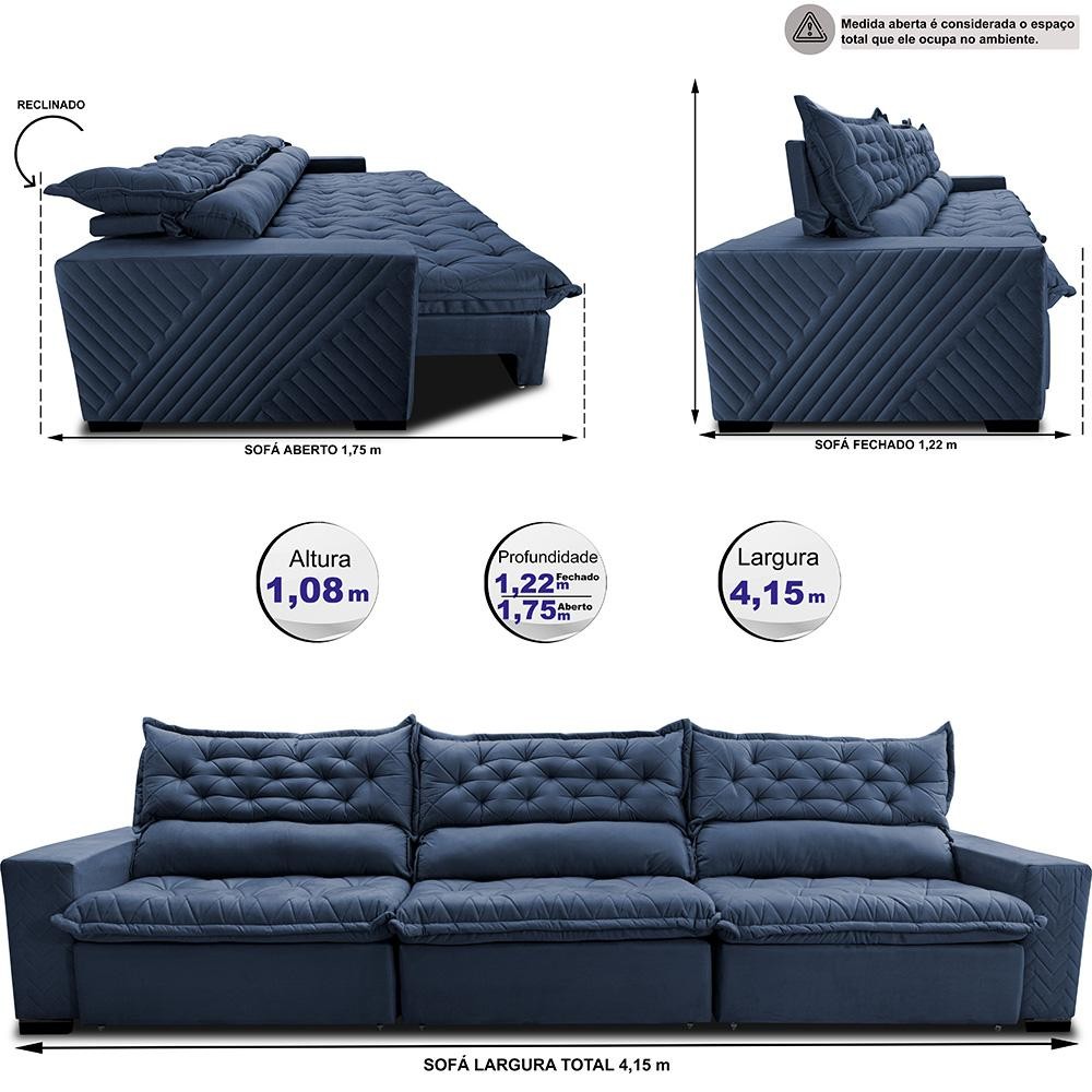 Sofá Retrátil e Reclinável 4,15m Cama inBox Spazus. Velusoft