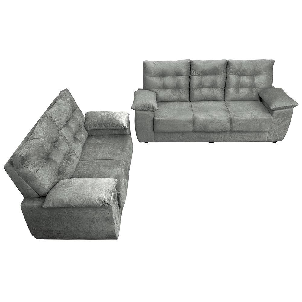 Conjunto Sofá Luxemburgo 3 E 2 Lugares 1,52m e 2,02m Suede Cinza