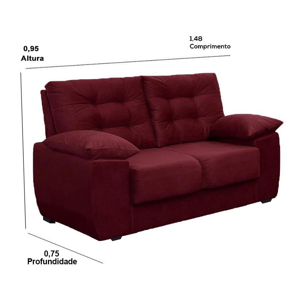 Sofá Luxemburgo 2 Lugares Tecido Suede Vinho - Moveis Marfim