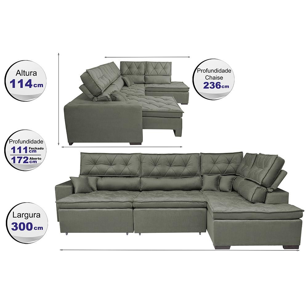 Sofa de Canto Retrátil e Reclinável com Molas Cama inBox Platinum 3,00x2,36 Tecido Suede Cinza