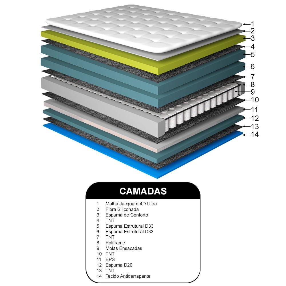 Conjunto Cama Box King de Molas Ensacadas D33 com Pillow TOP Cama inBox Select 193x203x71 Café